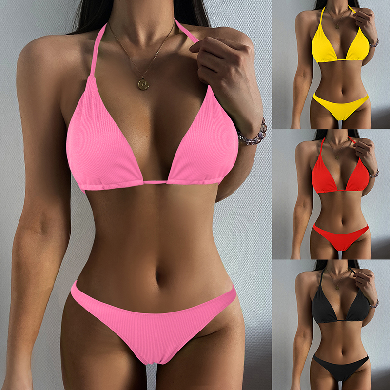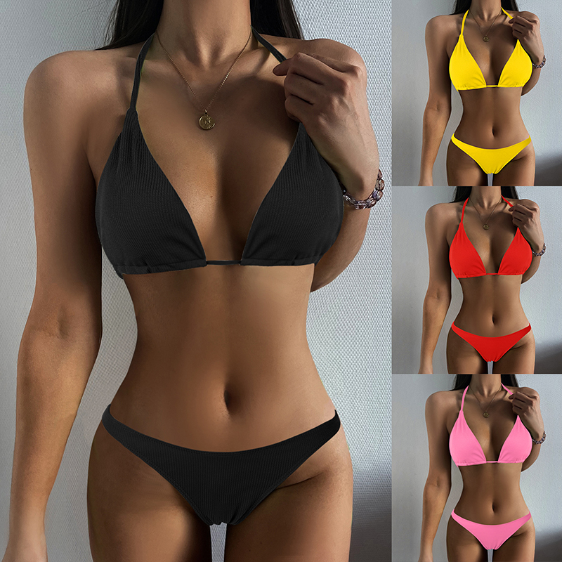 Features:Women Swimsuit Bikini Solid Color Sexy Ladies Split Swimsuit Bathing Suit Swimming Suits