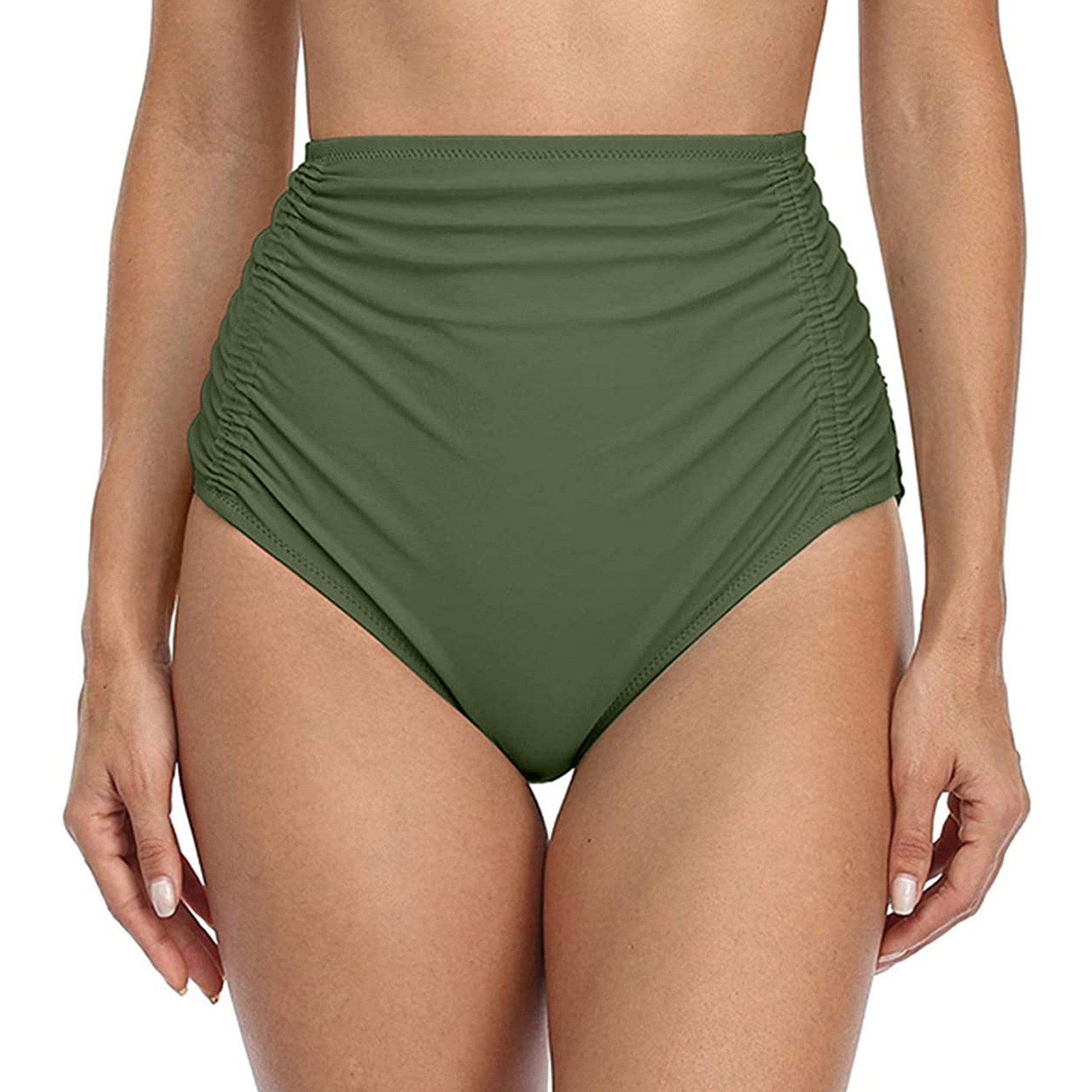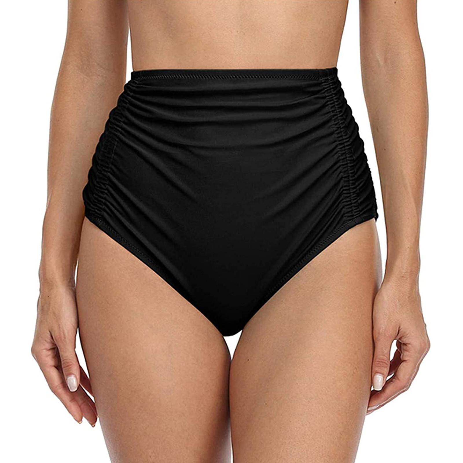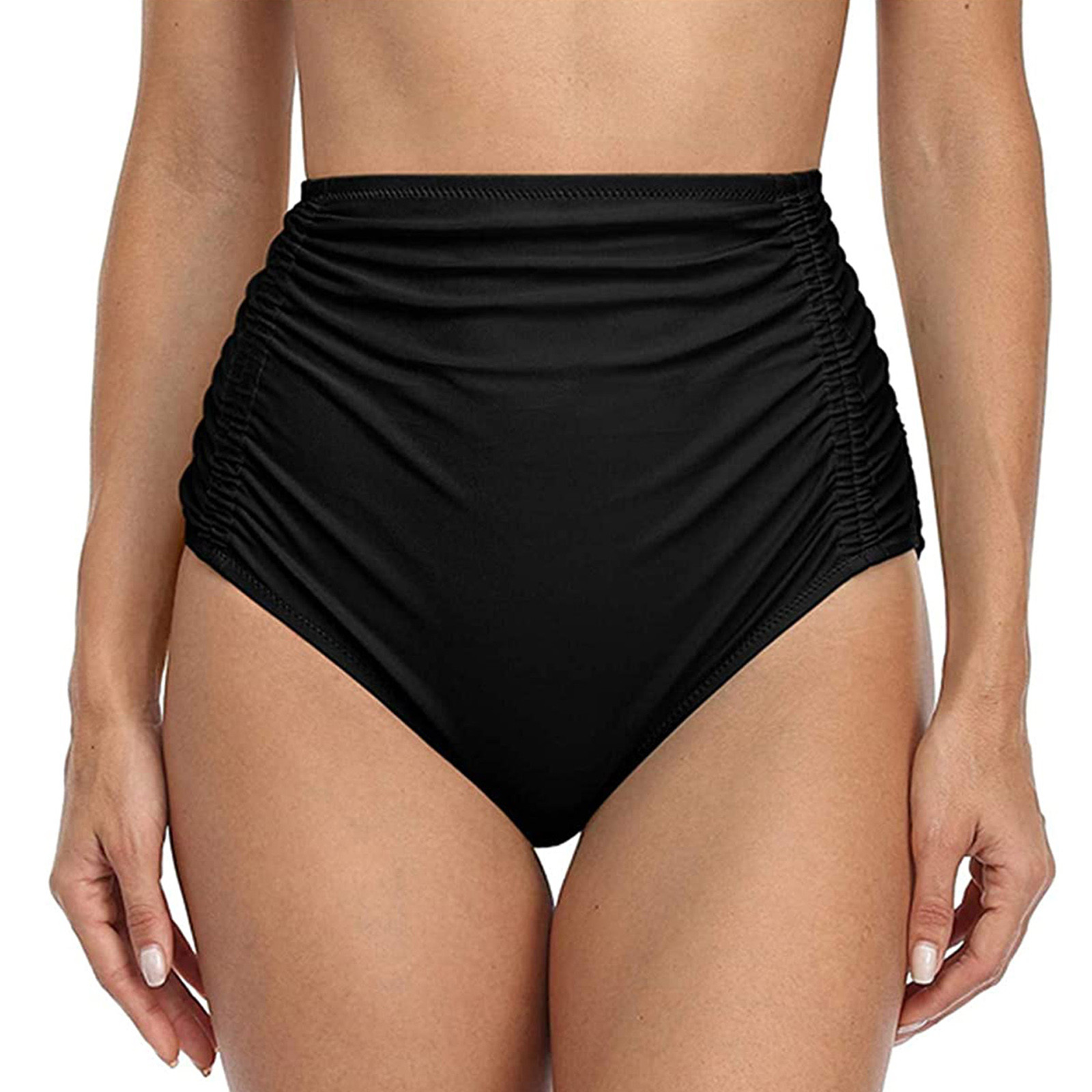 Женские плавки бикини с высокой талией для бега, пляжные шорты с рюшами, с обеих сторон