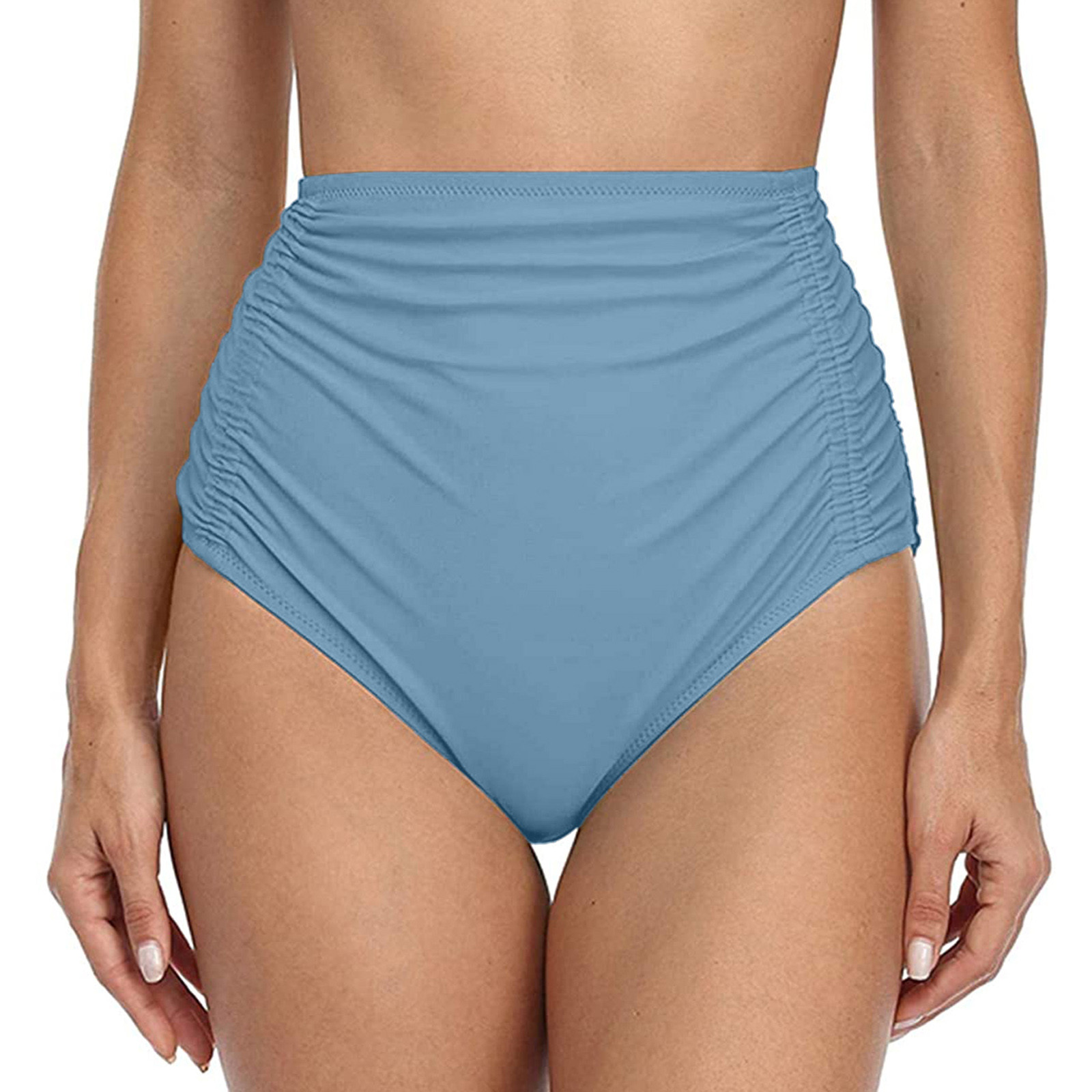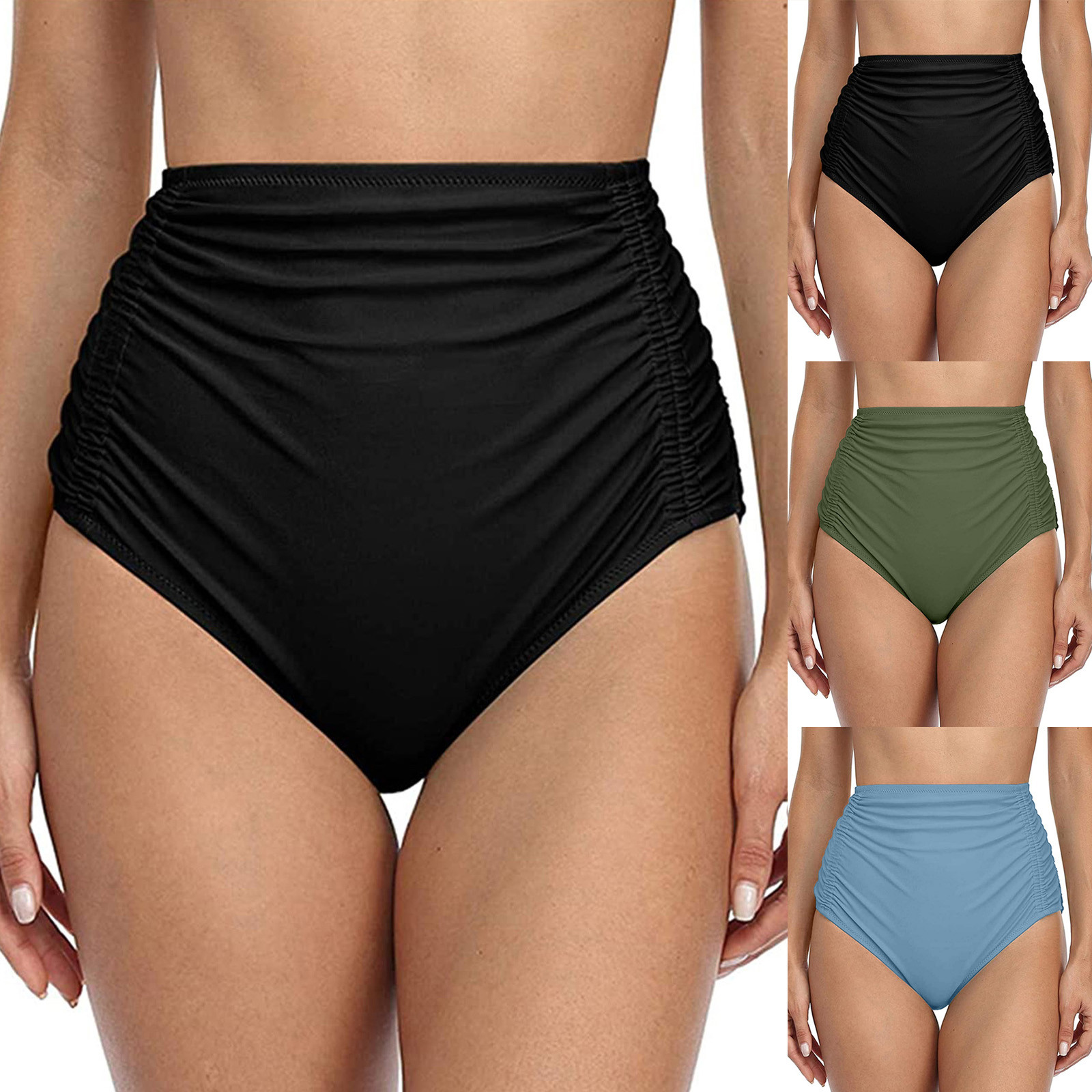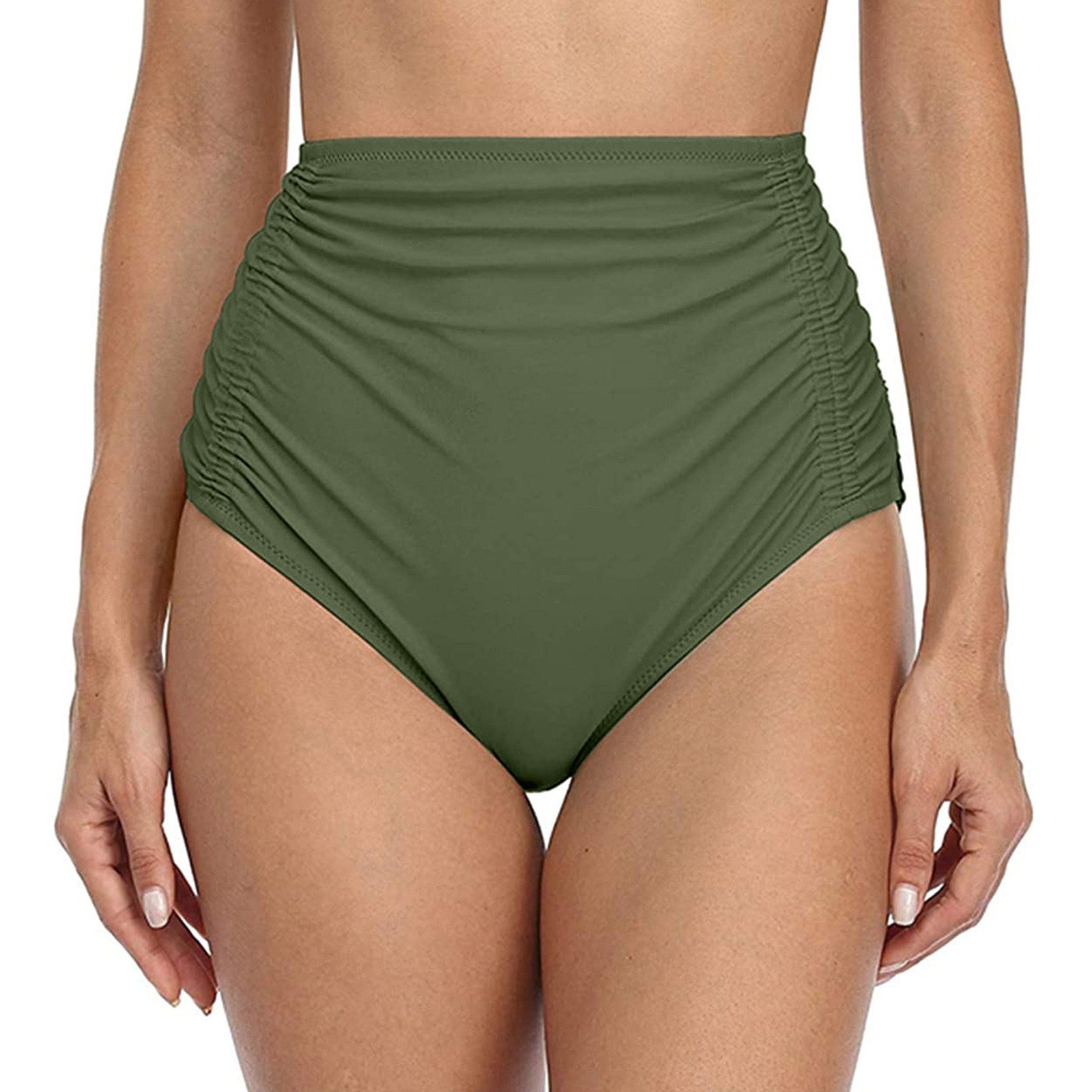Женские плавки бикини с высокой талией для бега, пляжные шорты с рюшами, с обеих сторон