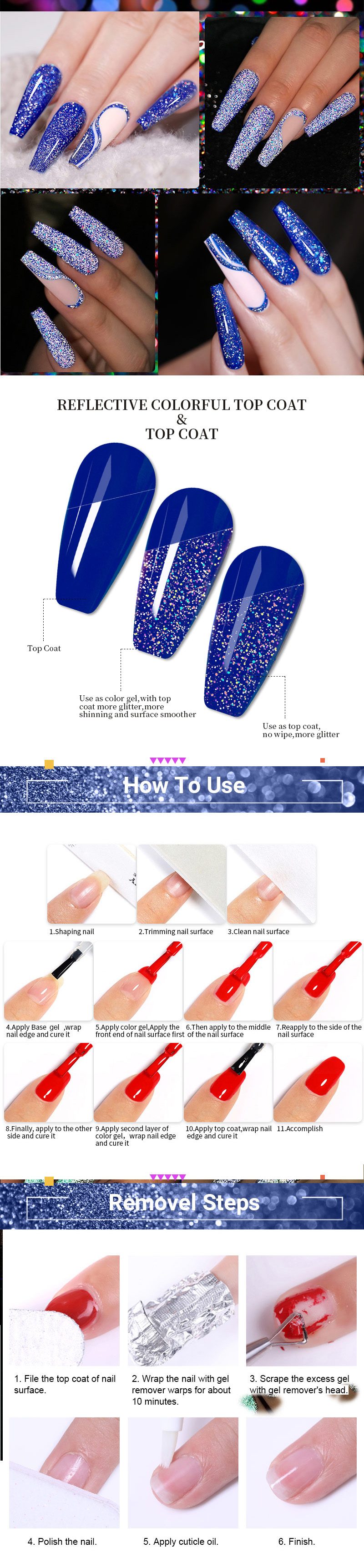 Подходит для нанесения на УФ-гелевые ногти, акриловые ногти и натуральные ногти и т. Д.
