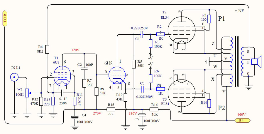 Когда цепь использует самоуклон, четыре резисторы 1W 101K на плате не установлены и не используются, И некоторые цепи с отрицательным напряжением сетки 60 в не установлены или не используются.