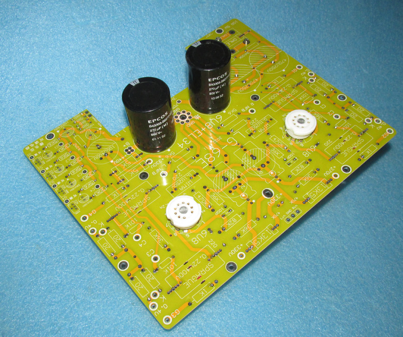 Примечание: 4 силовых трубки EL34 не на плате, они закреплены на шасси и соединены навесом.