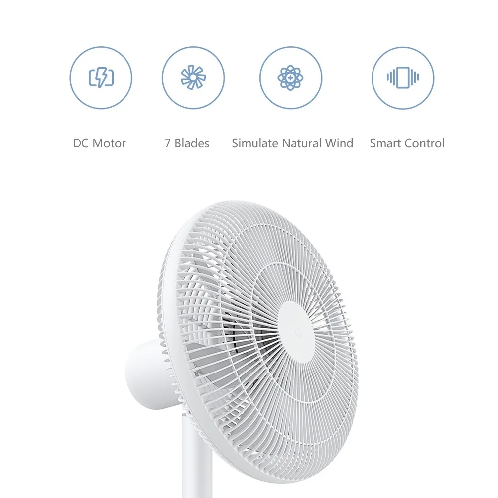 Благодаря изысканному и простому дизайну вентилятор с частотной стойкой Mi jia DC можно управлять через приложение Mi home, обеспечивая необходимую скорость ветра, можно регулировать четыре угла, более гибко и шире, beco mi ng Ваш летний компаньон.