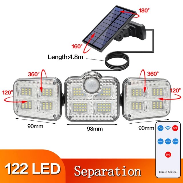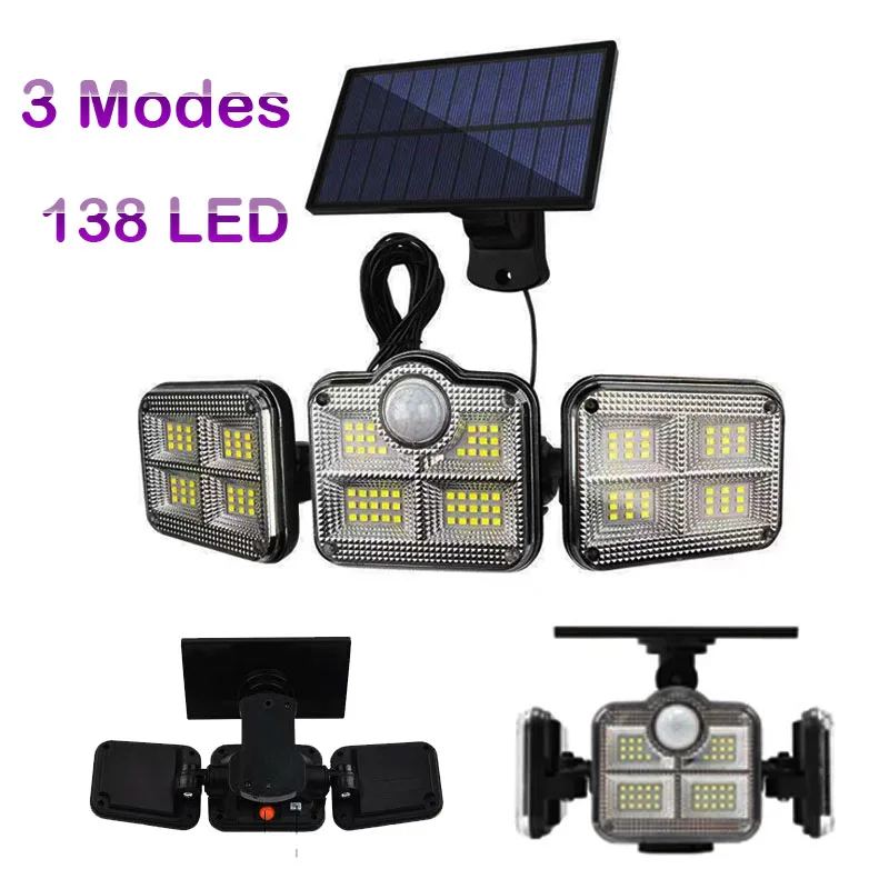 Светодиодный светильник на солнечной батарее, наружный датчик движения, 3 головки, водонепроницаемый Солнечный свет, аварийная уличная безопасность, лампа для сада, гаража, патио