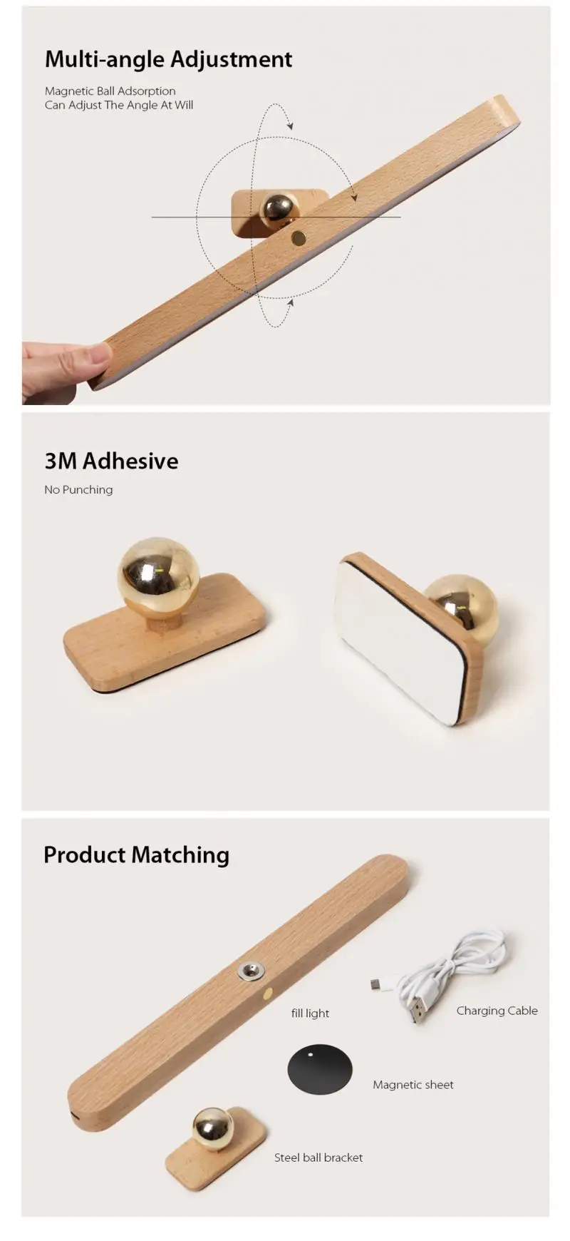 Магнитное притяжение между основанием и корпусом лампы, легко снять корпус лампы. Магнитное основание может быть адсорбировано на любой металлической поверхности и может использоваться в нескольких сценах.