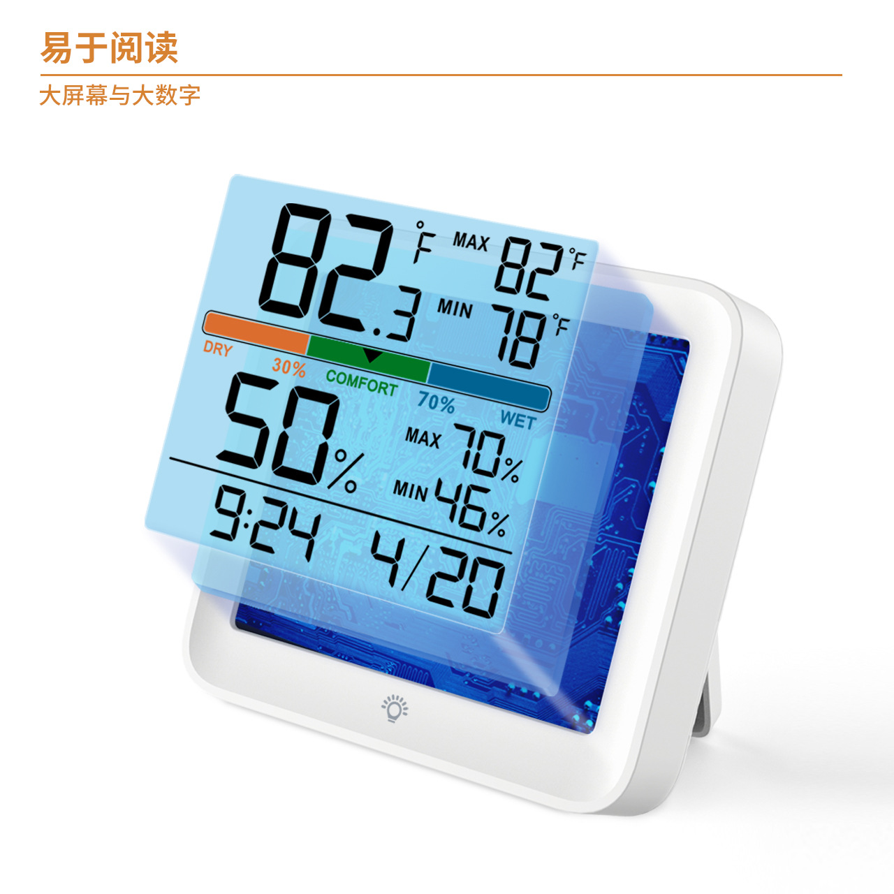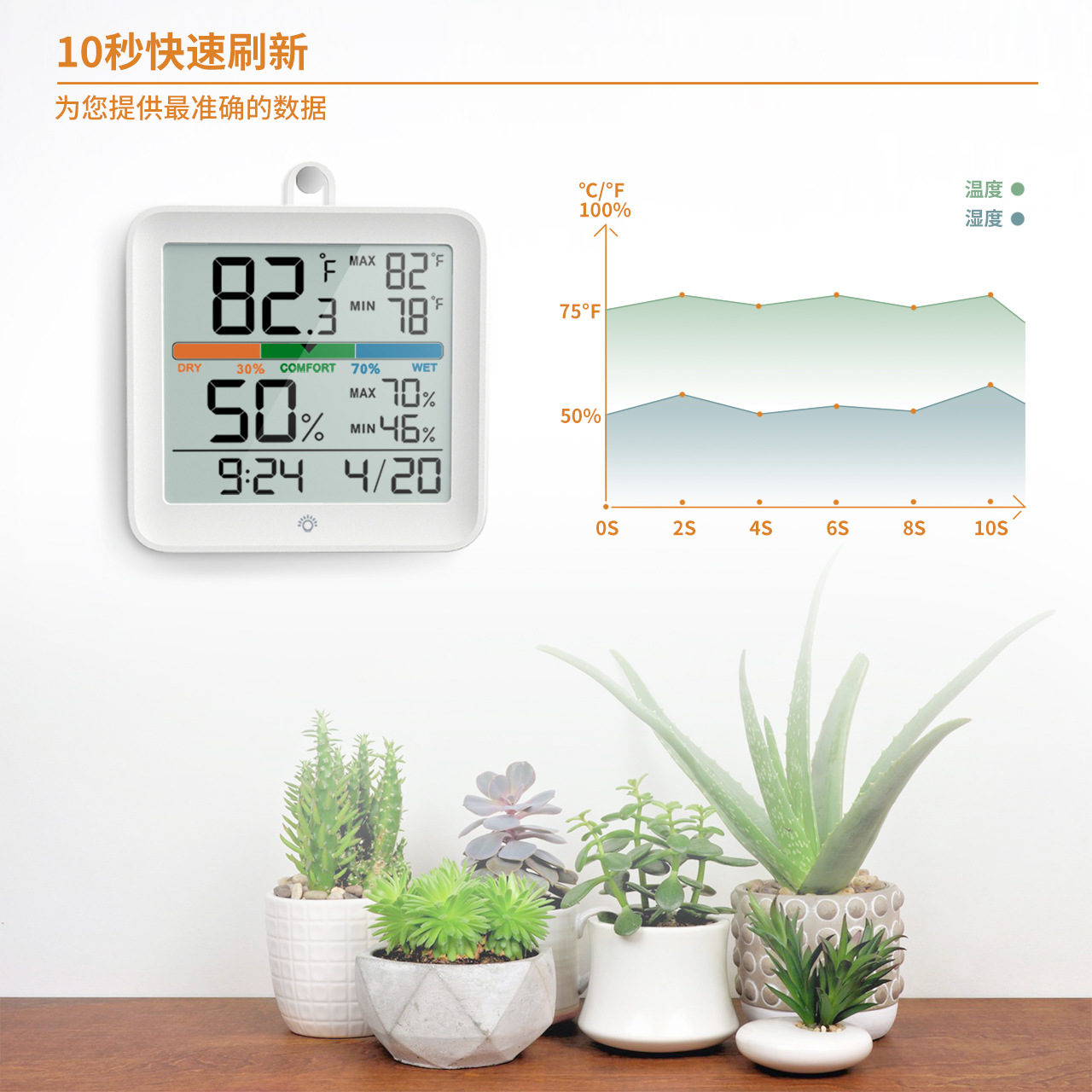 Диапазон измерения влажности: 0% ~ 99% RH, погрешность ± 5% rh, точность 1%, цикл обнаружения 10 секунд.