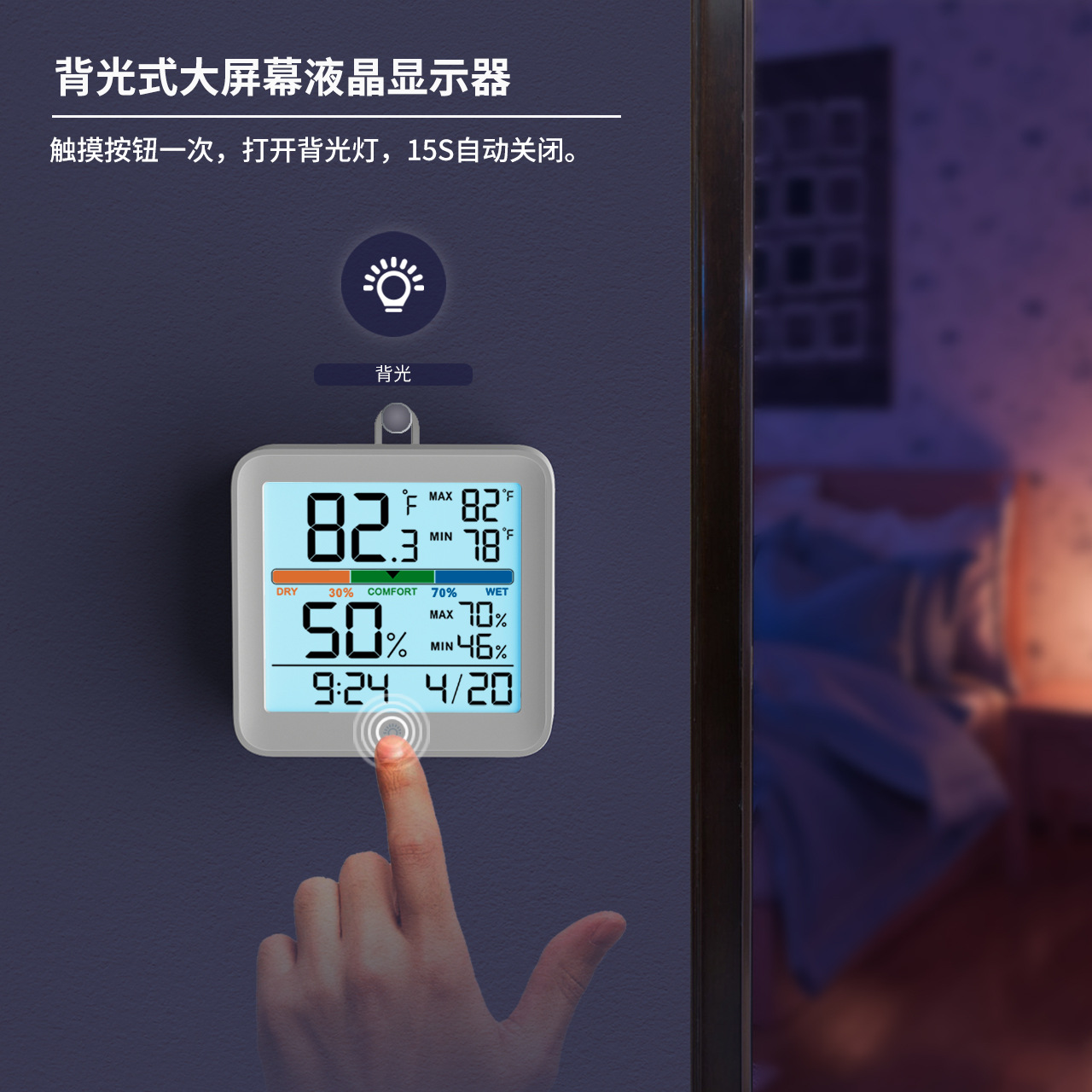 3. Влажность: Когда влажность больше или равна 70% ~ 99%, (70%-79%, 80%-89%, 90%-99% в общей сложности три передачи), будет отображаться влажный значок