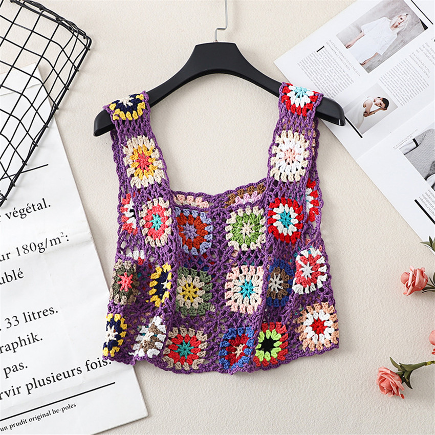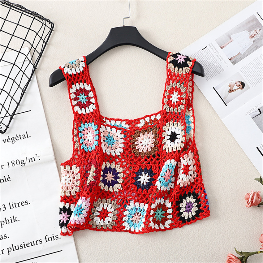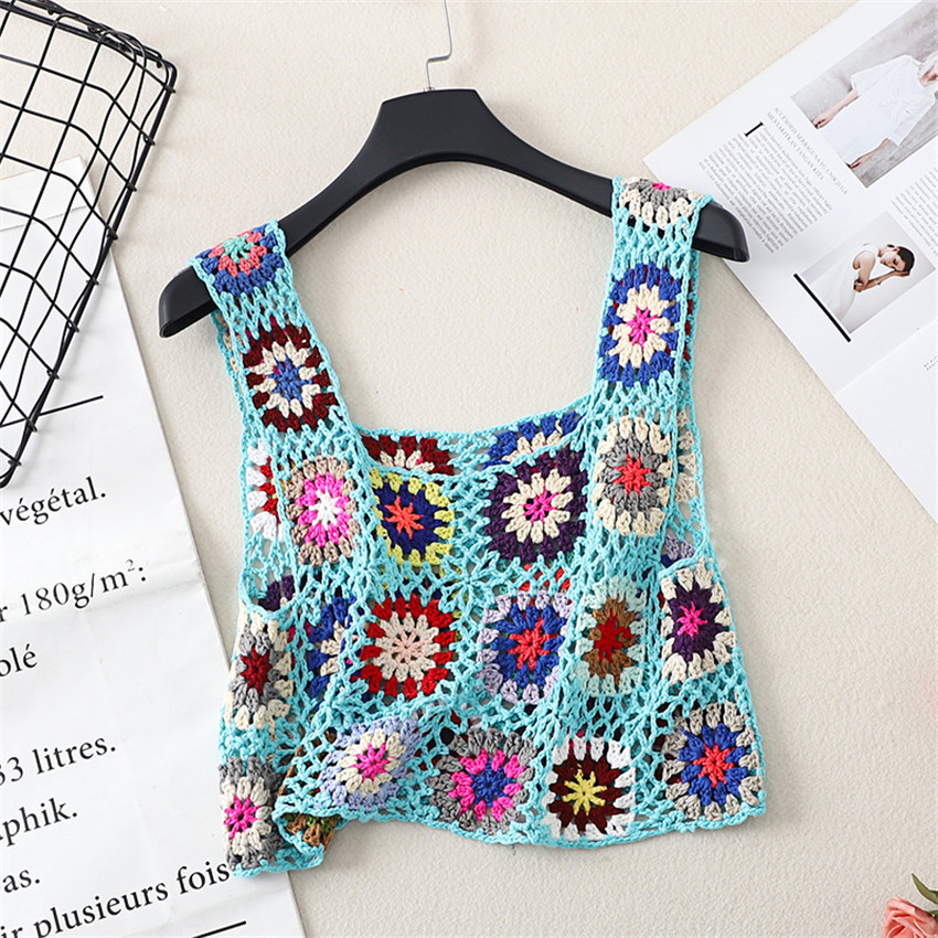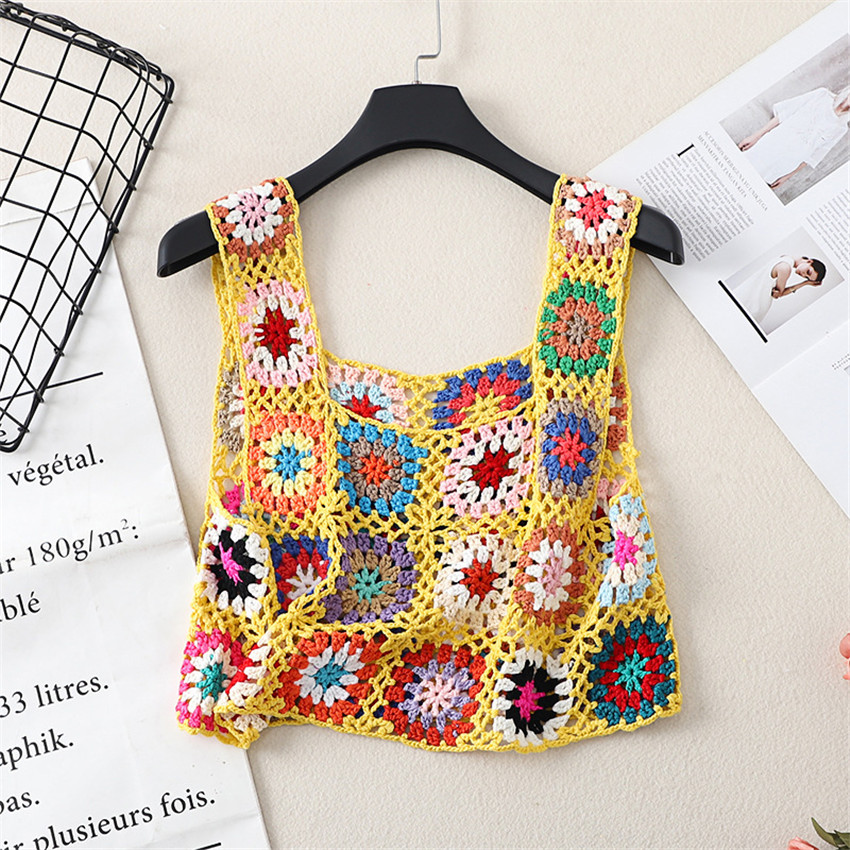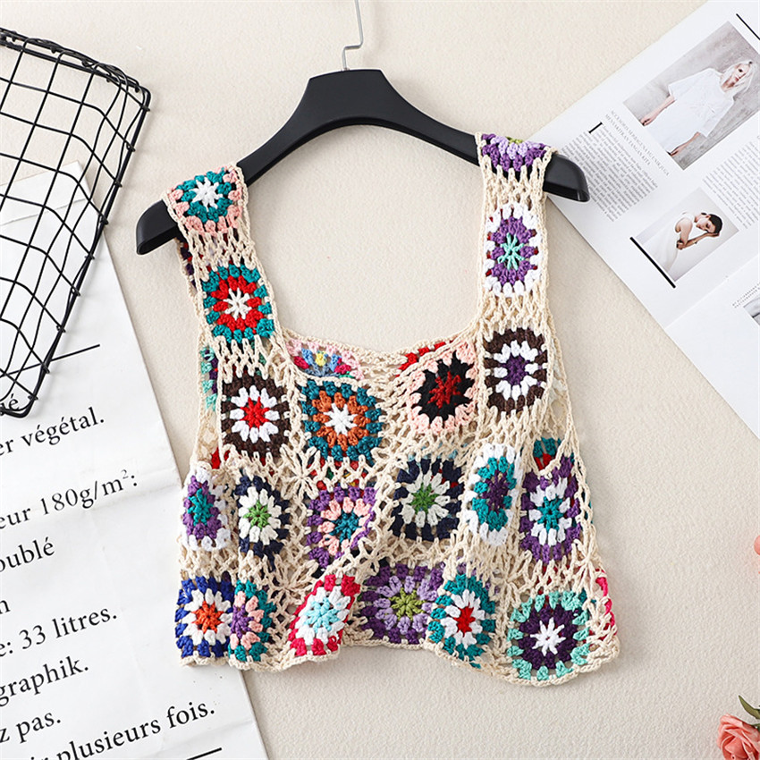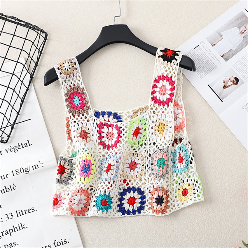 Бохо Ретро ручной работы крючком топы Одежда для пляжного отдыха Camis Mujer летняя открытая Трикотажная майка вязаная одежда в стиле ретро