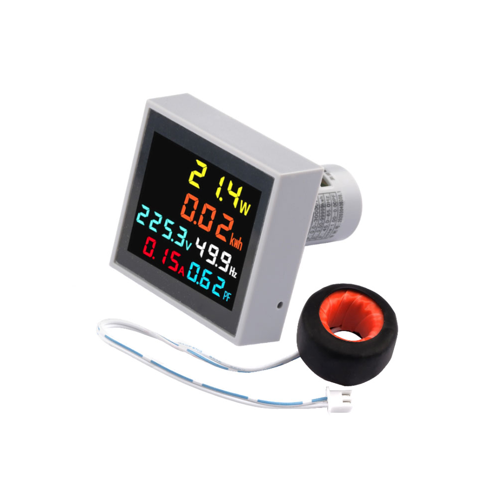 The digital multifunction meter can simultaneously measure and display 6 parameters such as AC voltage, AC current, active power, power factor, frequency and electric energy. The display part of the instrument adopts a color high-definition liquid crystal display.