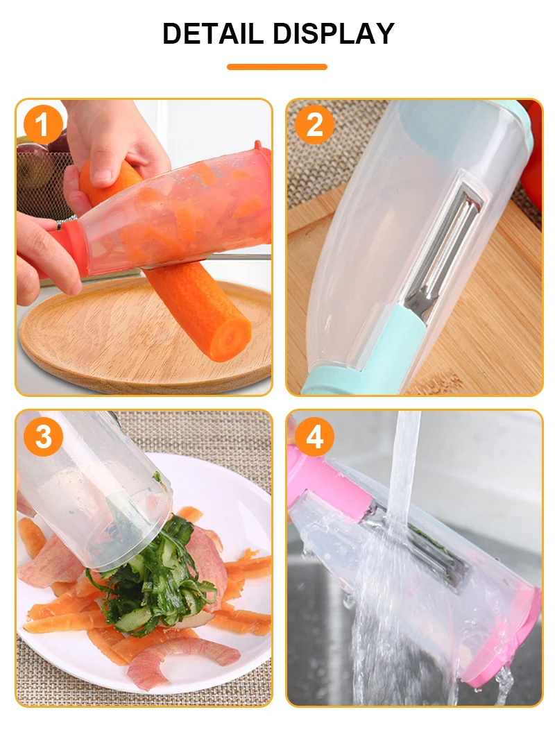 Стандартная Овощечистка может легко очищать Твердые овощи и фрукты; Измельчитель Овощечистка может нарезать овощи на однородные полоски, которые очень подходят для салатов, макаронных изделий и т. Д.; вставьте нож, чтобы разрезать или нарезать другие продукты.