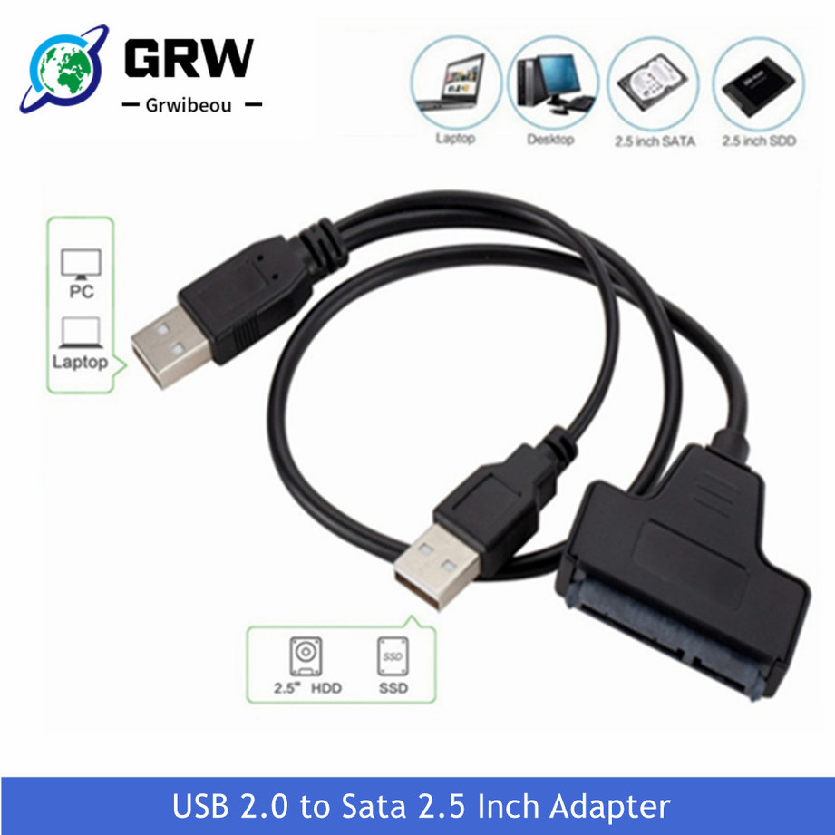 Grwibeou Usb для Sata USB 2,0 до 2,5 дюймов HDD 7 + 15pin SATA кабель адаптер для SATA SSD и HDD адаптер USB2.0 источник питания