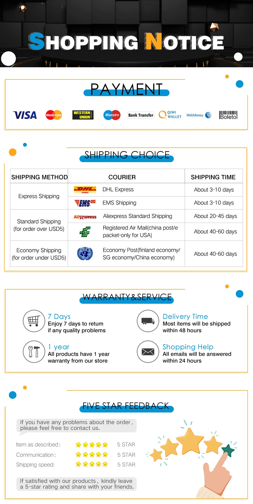 5. Гарантия и поддержка: Мы стремимся предоставить вам удовлетворительные продукты, если у вас есть какие-либо вопросы о наших продуктах, пожалуйста, не стесняйтесь связаться с нами, мы дадим вам самый удовлетворительный ответ немедленно.
