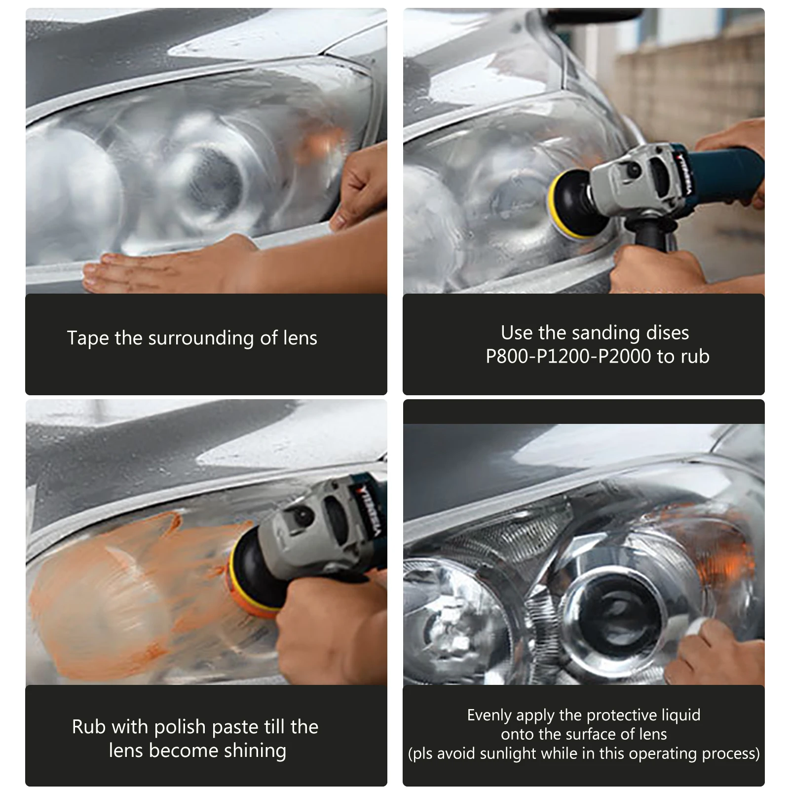 Набор для восстановления фар используется для устранения различных проблем, таких как пожелтение, царапины, окисление, размытие и т. д., которые могут быть сохранены в течение длительного времени после ремонта фар. Наша жидкость для ремонта фар очень прочная и может продлить срок службы ваших фар или задних фонарей.