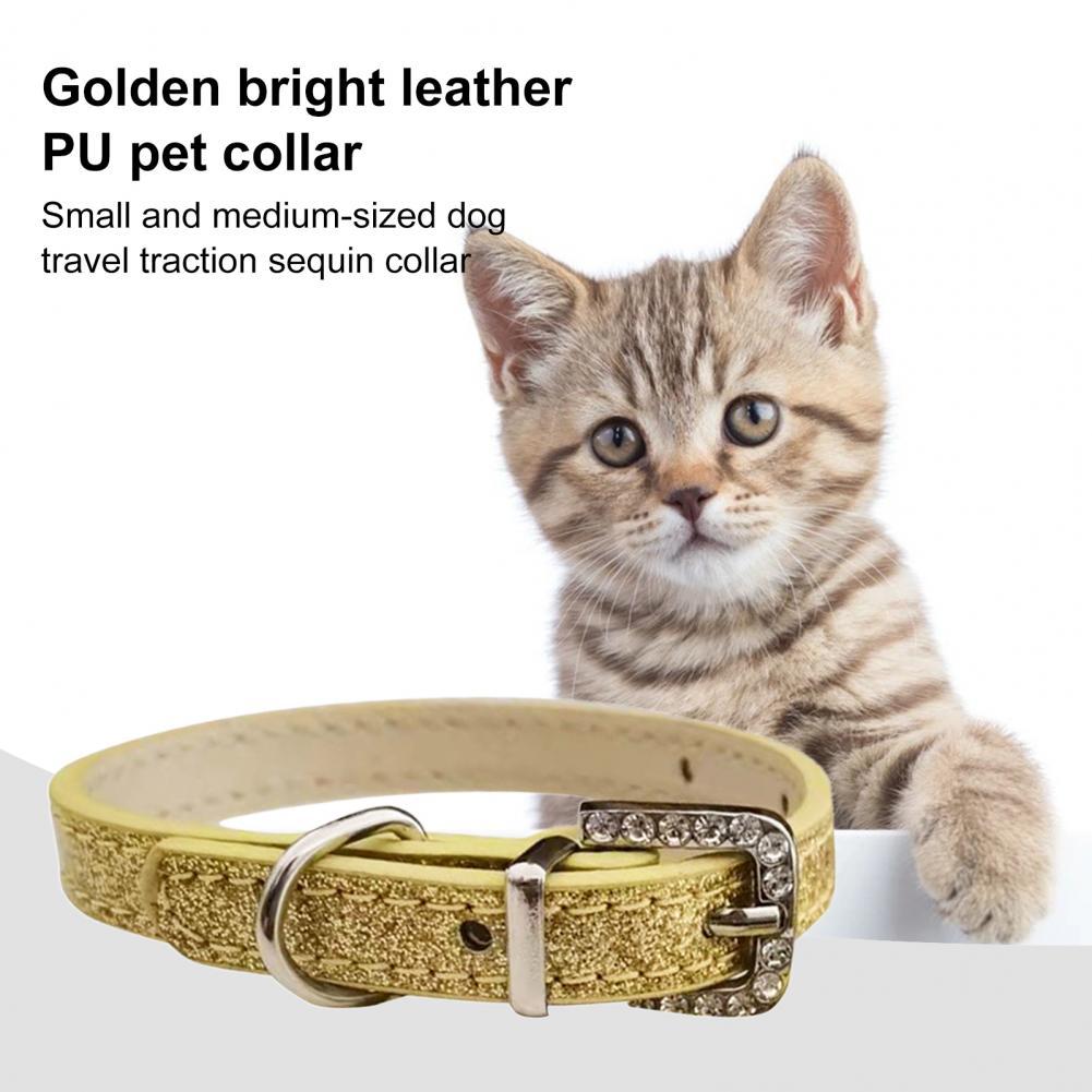 Легко сочетается с одеждой для домашних животных или поводком для домашних животных, а Стразы с пряжкой, золотистый цвет и декор с пайетками делают ошейник для домашних животных более стильным и красивым.