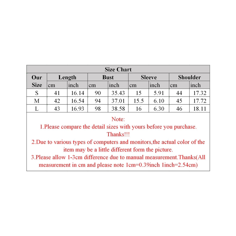 Размер: L длина: 43 см (16,92 дюйма) Бюст: 98 см (38,58 дюйма) рукав: 16 см (6,29 дюйма) плечо: 46 см (18,11 дюйма)