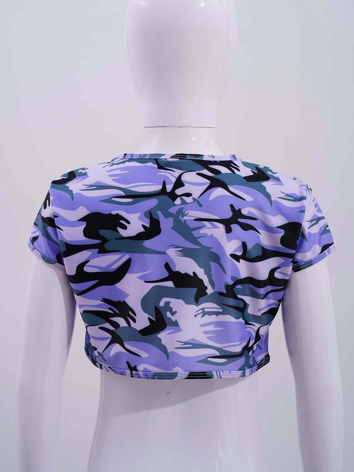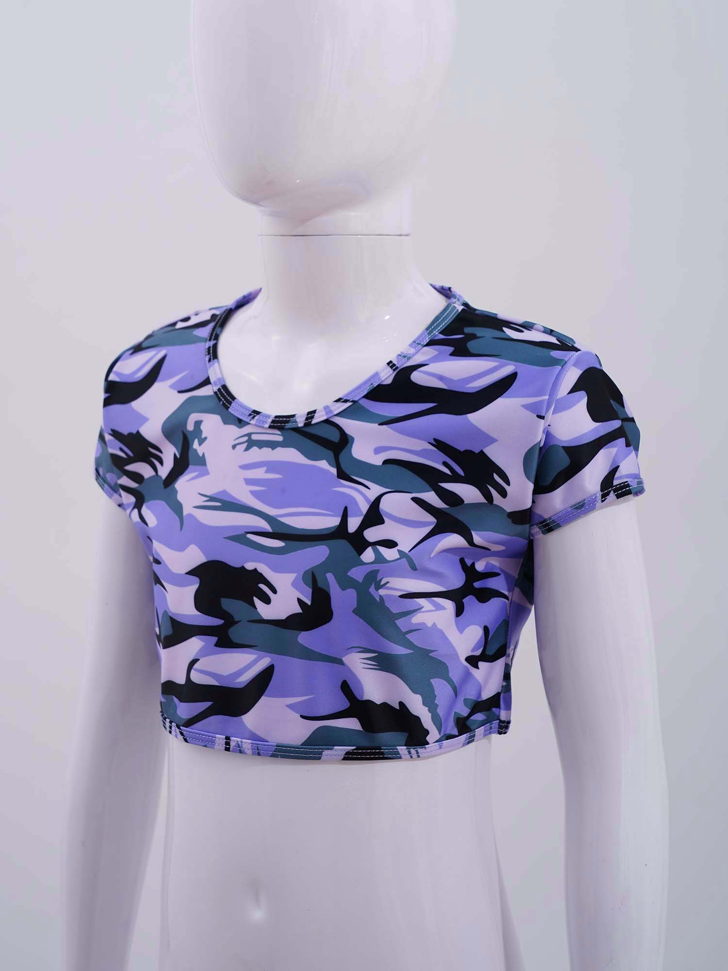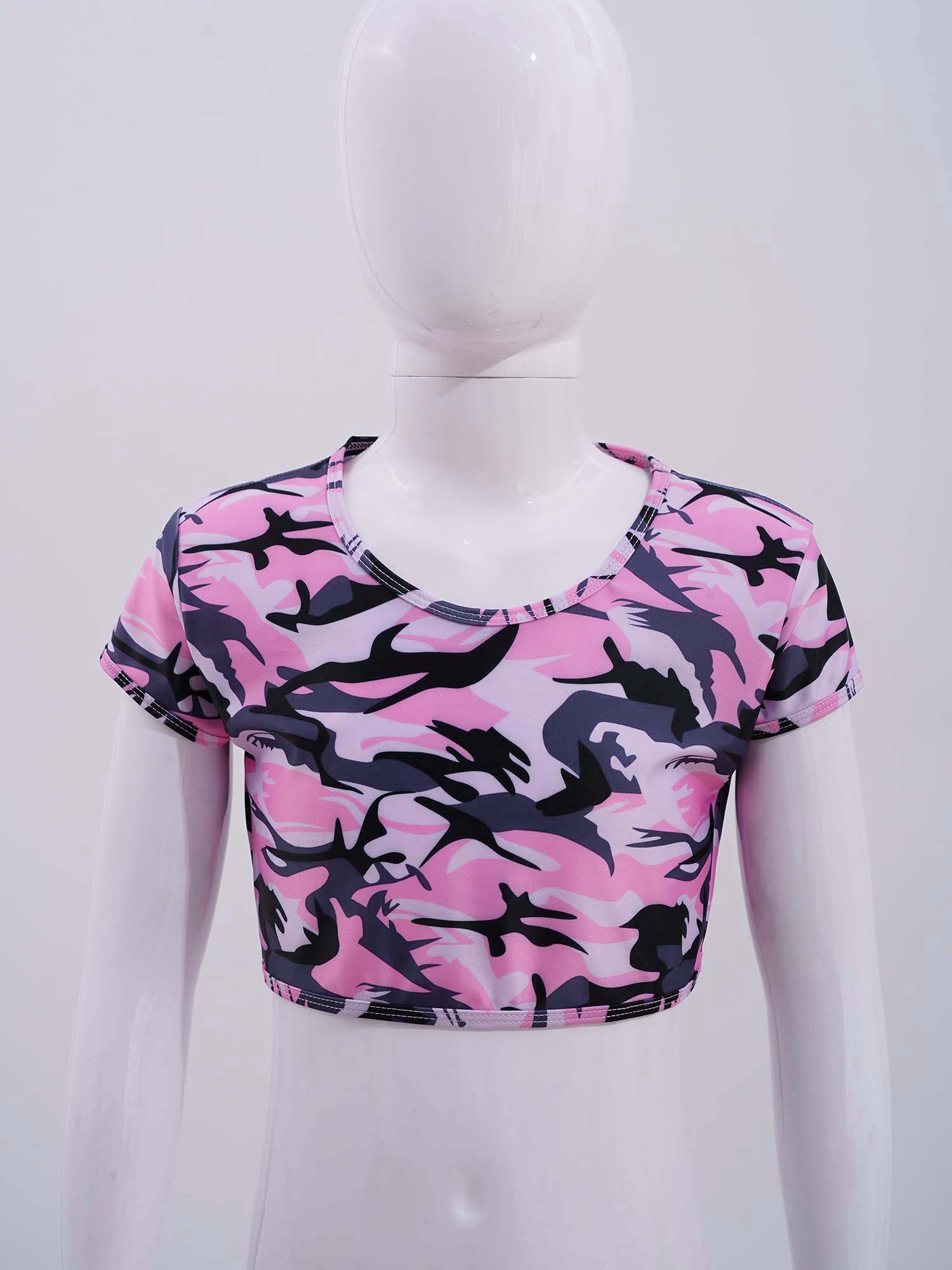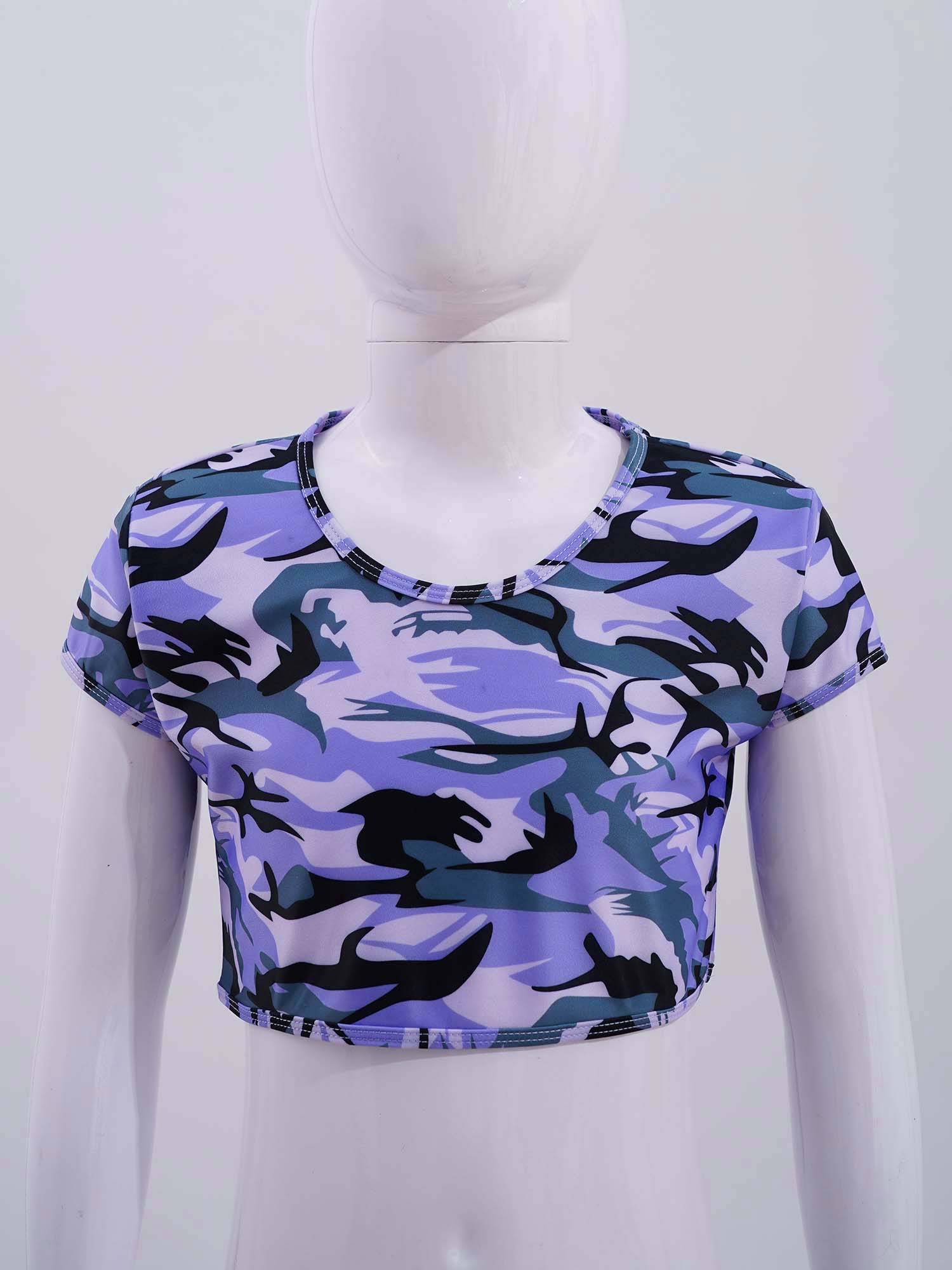 Стильная одежда для девочек; Сетчатый укороченный топ с короткими рукавами и круглым вырезом, украшенный пайетками; Стиль пэчворк; #6-14