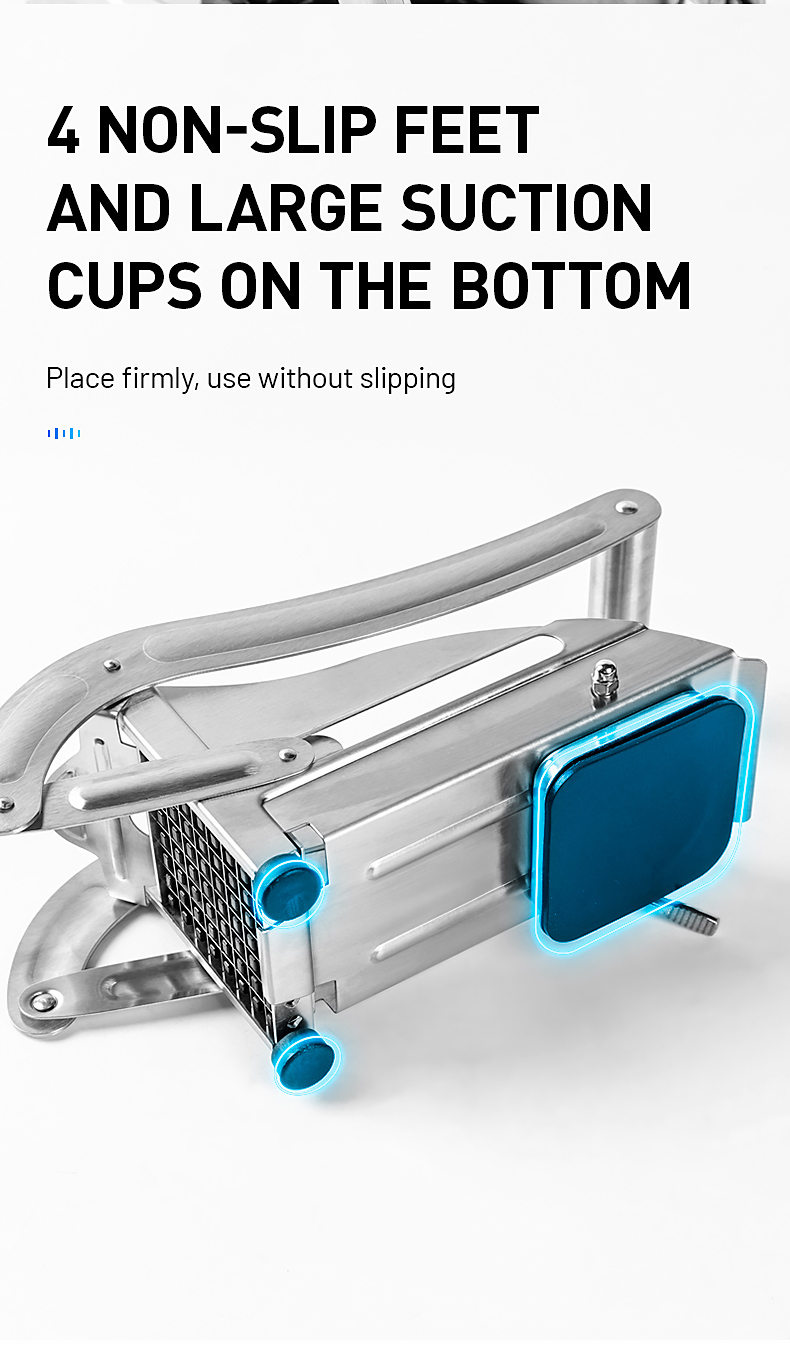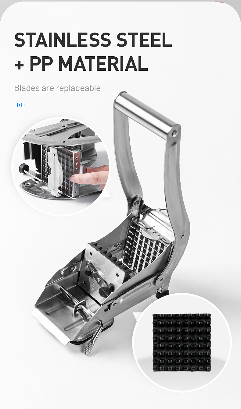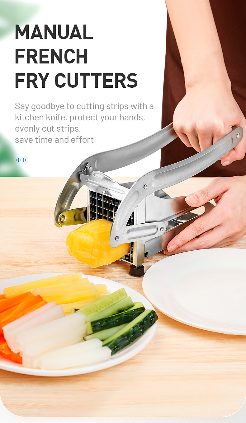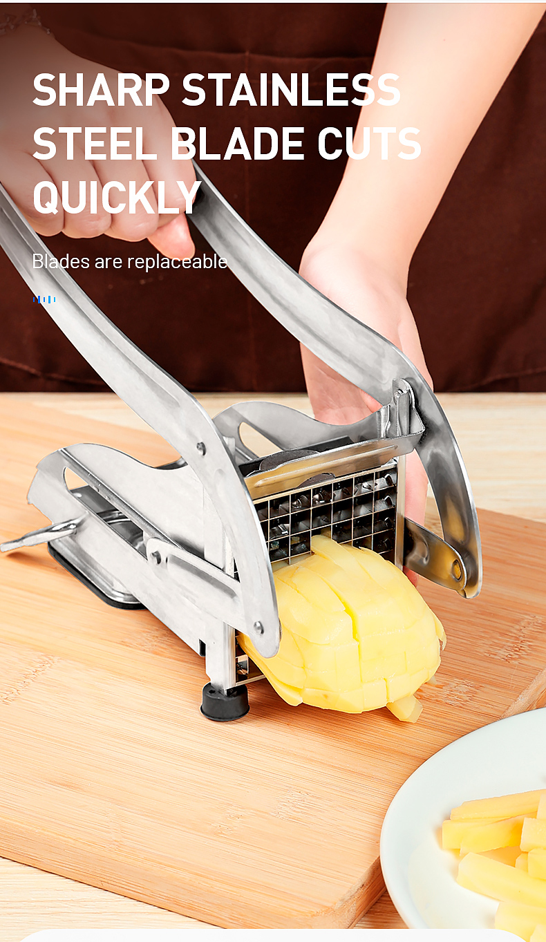 Вам надоело резать картофель кухонным ножом, который тратит время и усилия? Ну, получите этот класс нержавеющей стали резка для картофеля! Не нужно тратить много времени, чтобы нарезать картофель, этот продукт может помочь вам нарезать картофель за одну секунду. Это дает вам нарезанный картофель, который намного меньше, чем вы можете получить вручную. Изготовлен из высококачественной нержавеющей стали, прочный, никогда не ржавеет и хорош для вашего здоровья. Это абсолютно экономит время, и вы влюбитесь в приготовление картофельных блюд.