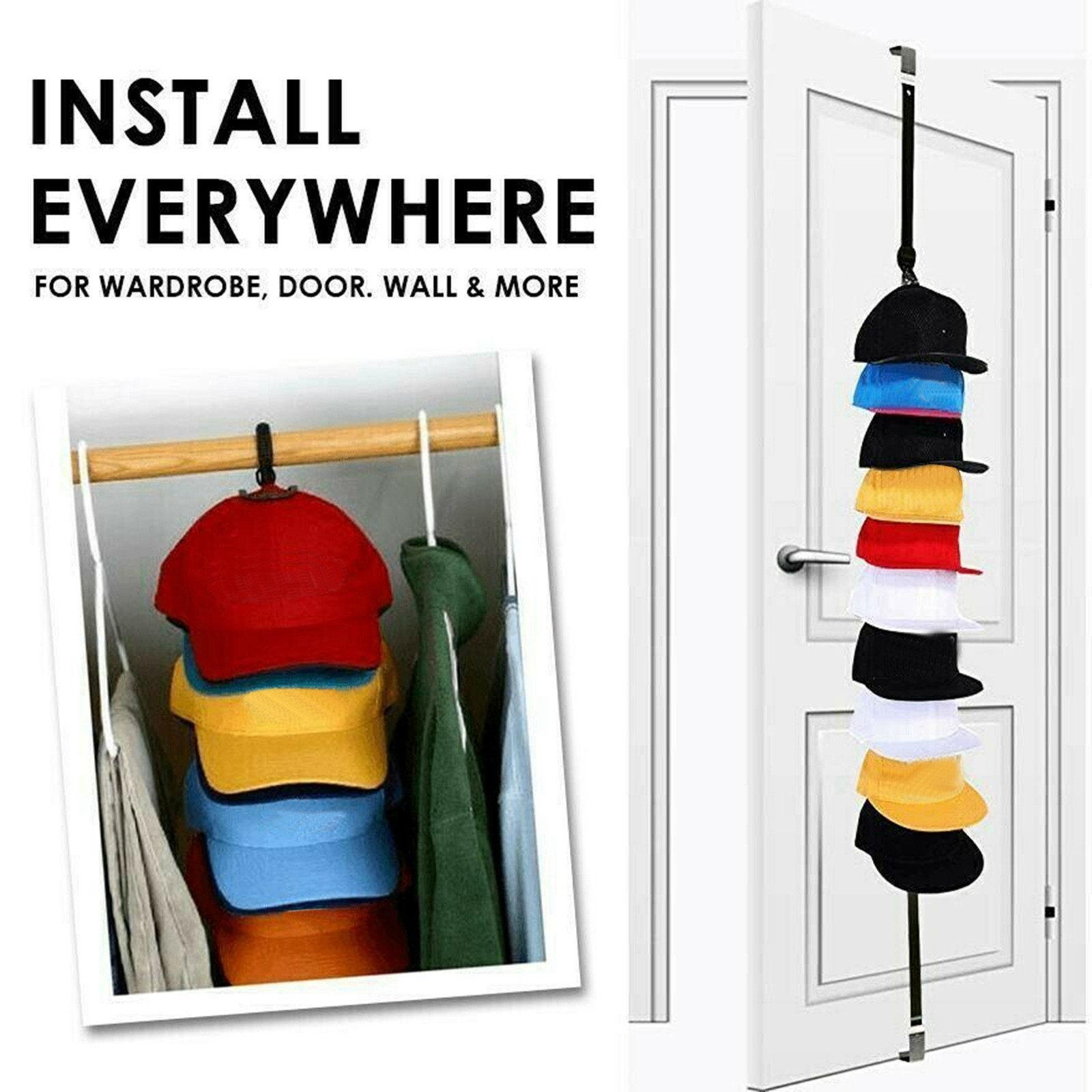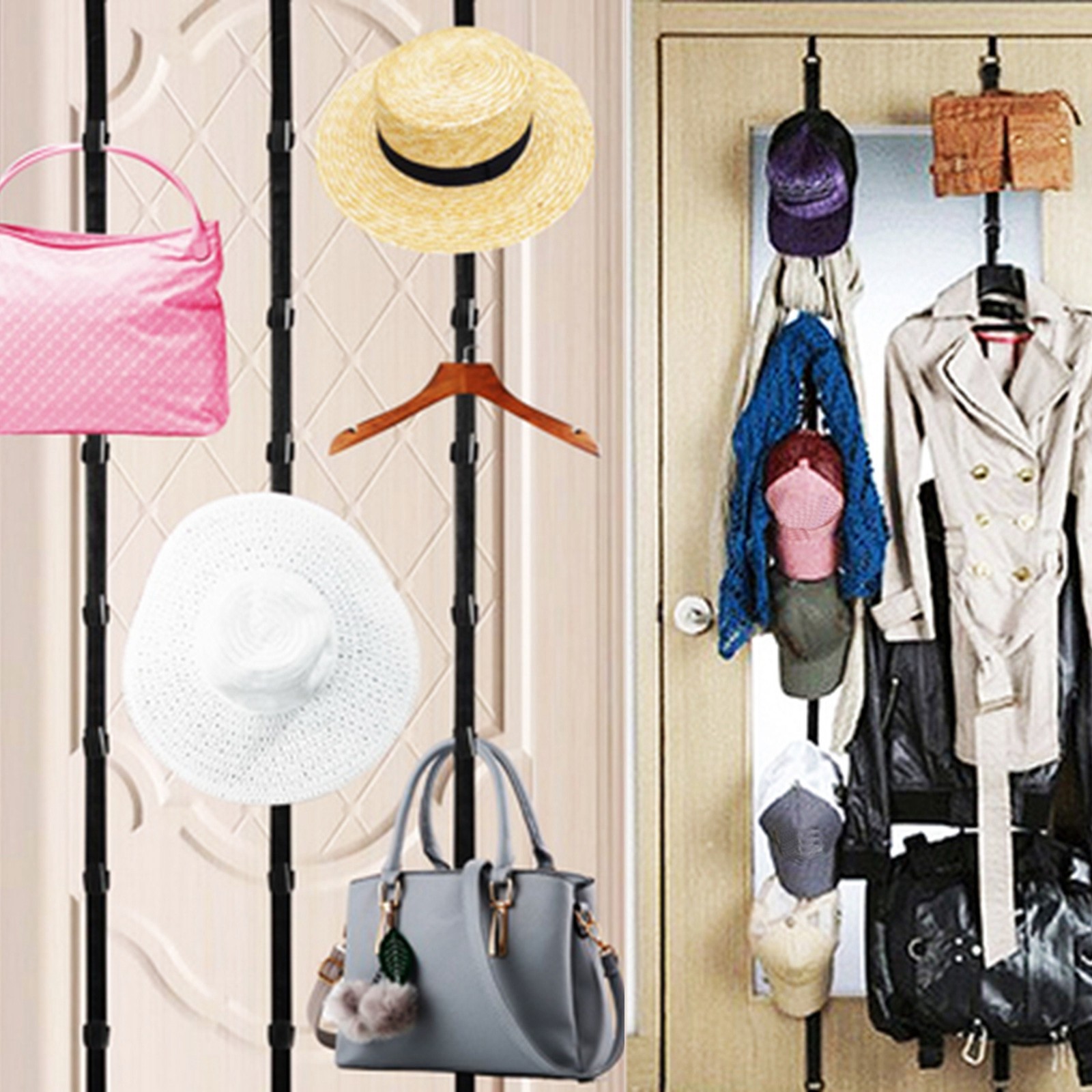 This Adjustable Cap & Bag Door Rack helps organize your caps, hats, clothes, bags, ties and so on in a neat way.