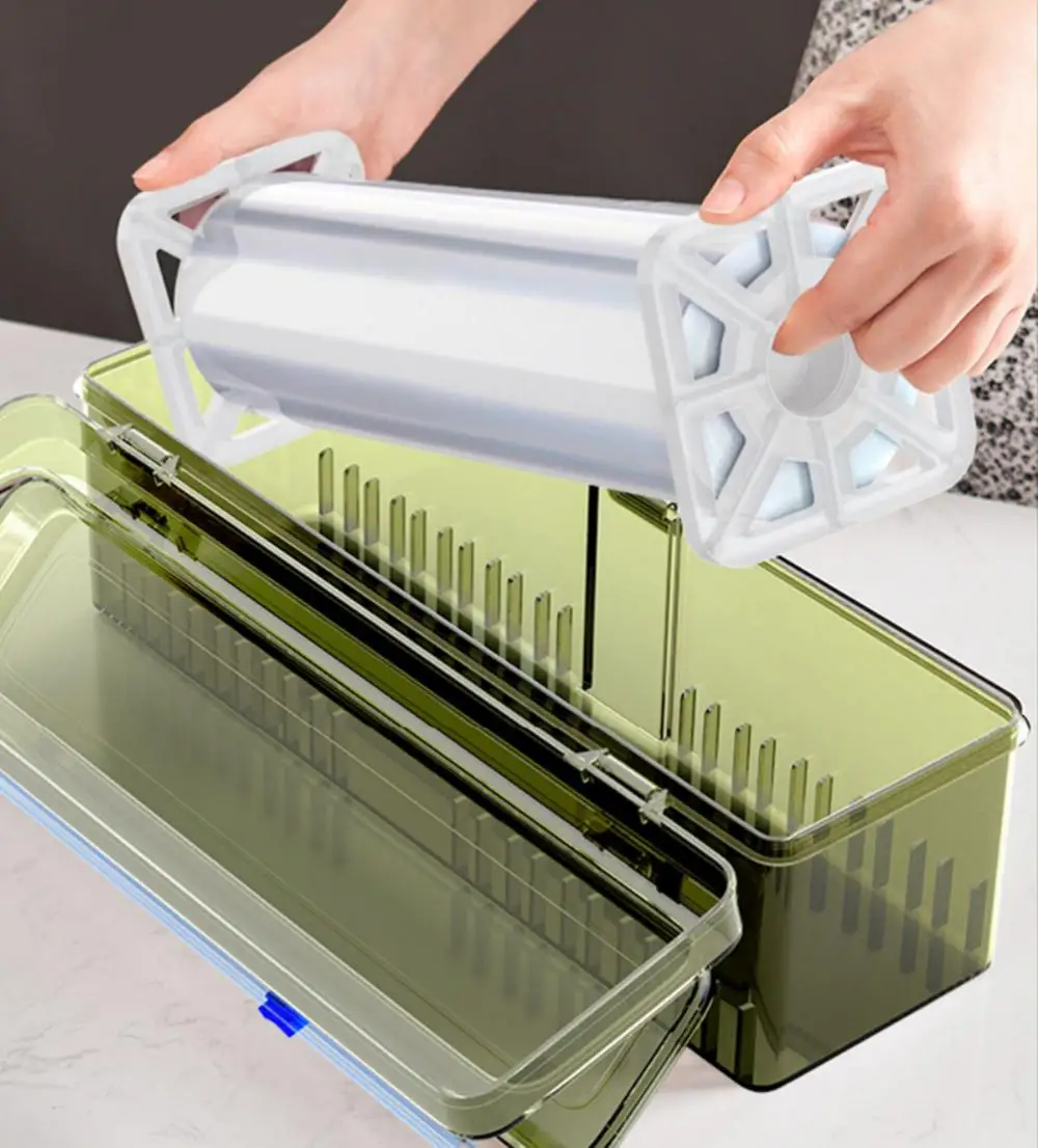 Пластиковая многоразовая коробка для пищевой пленки с ползунковый резак, диспенсер для пищевой упаковки, резак для вощеной бумаги из алюминиевой фольги, кухонные аксессуары