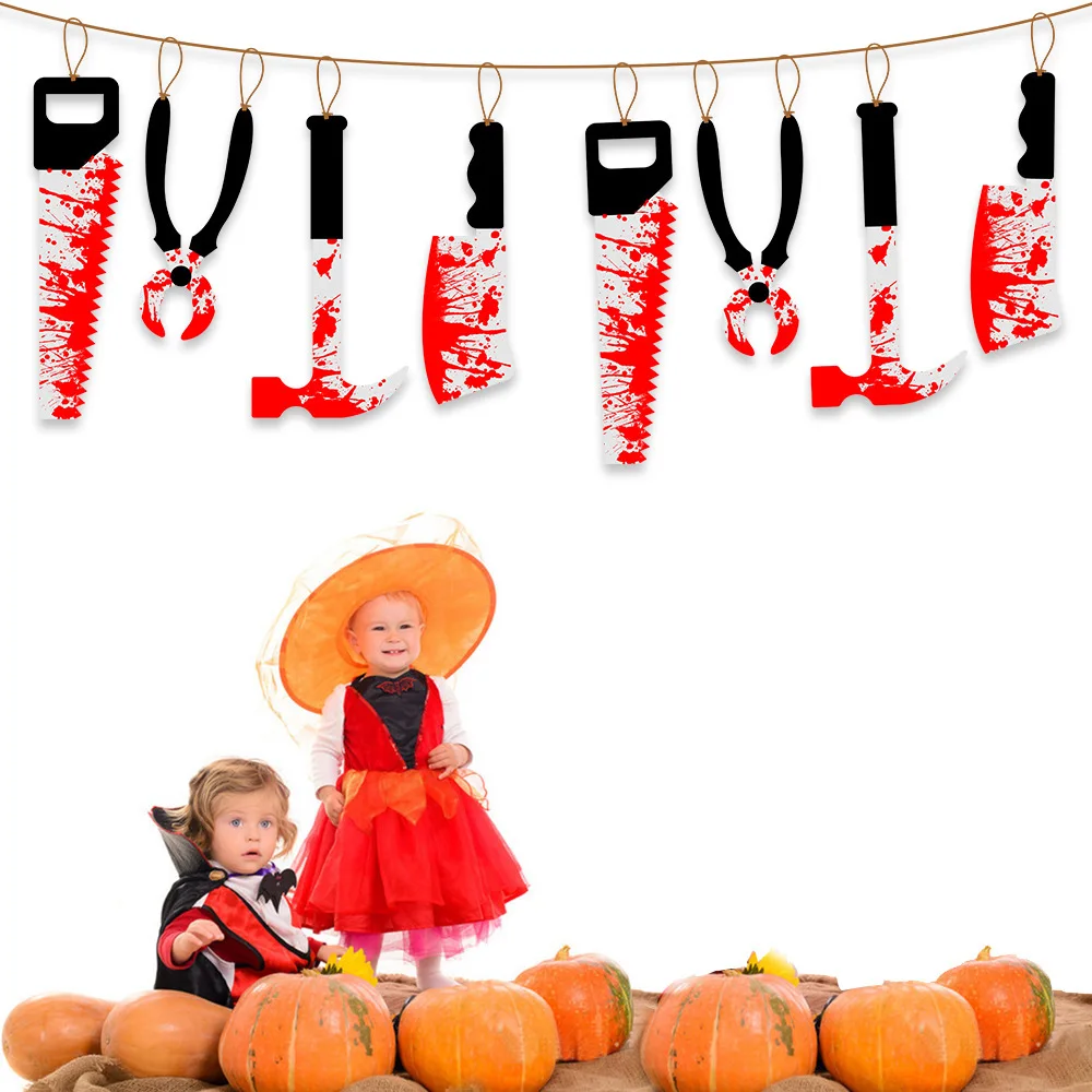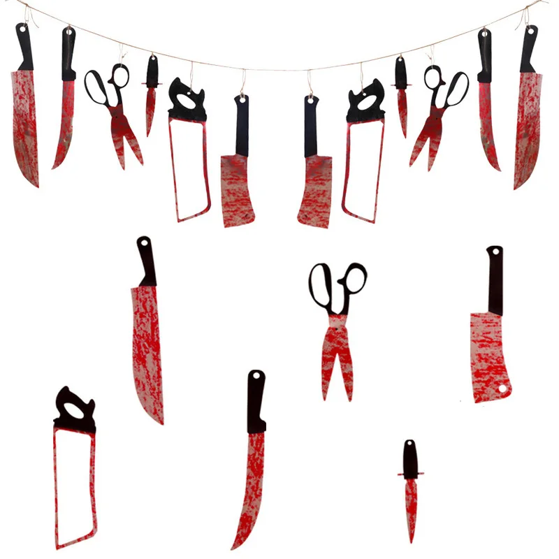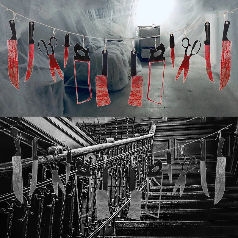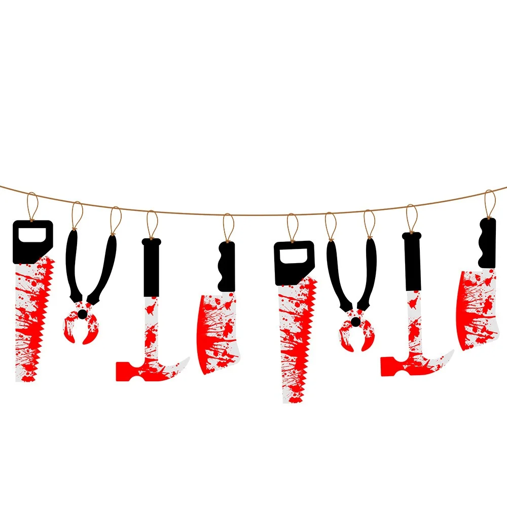 2,4 м Хэллоуин украшения баннер ужас кровь нож s инструмент висячий орнамент DIY страшный дом с привидениями подвесной нож гирлянда баннер