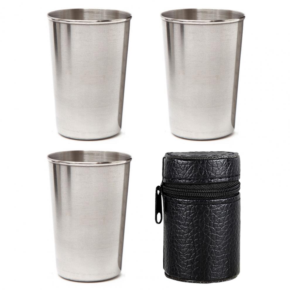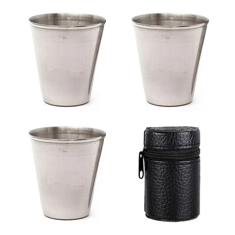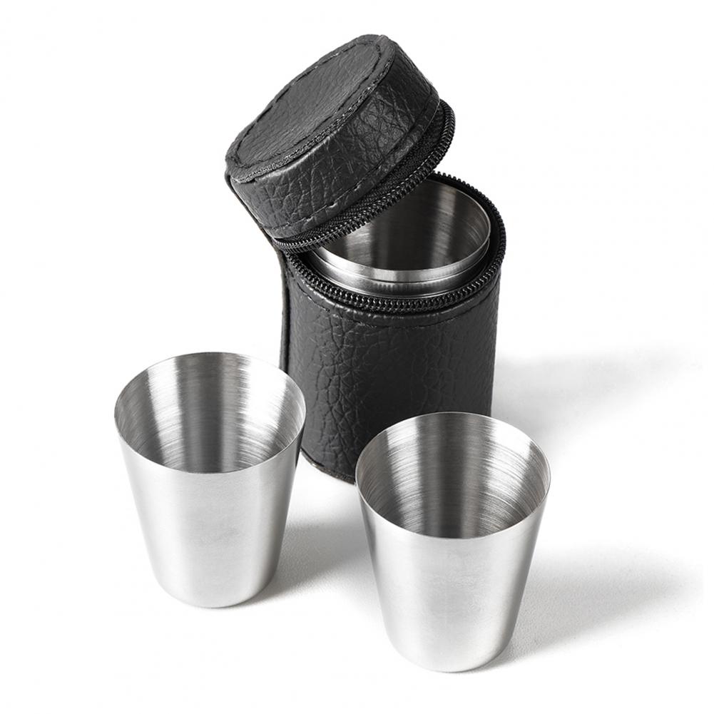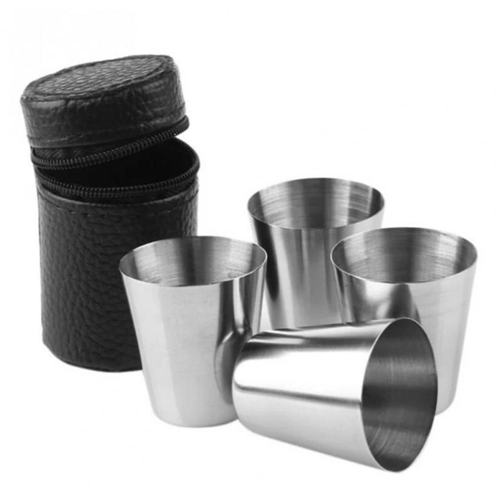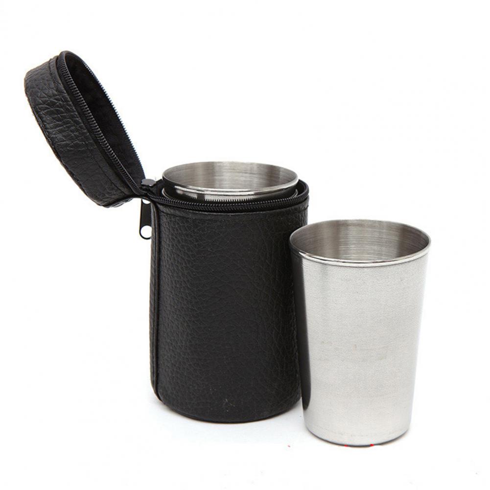 4Pcs Portable Coffee Cup Polishing Process Not Easy to Fade Silver Color Durable Camping Mug for Home
