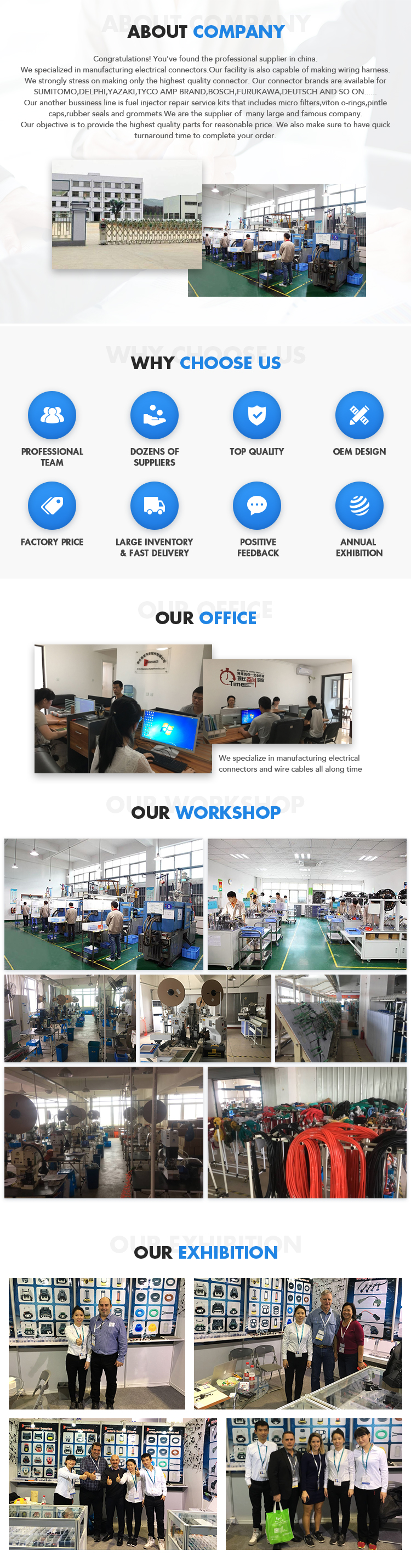 Мы стараемся держать достаточный запас всех наших продуктов, так как некоторые клиенты не могут предсказать, что они требуют нашего продукта, мы сделаем все возможное, чтобы сохранить достаточный запас. Мы стремимся постоянно расширять нашу базу продуктов, чтобы обеспечить рынок комплексным источником для всех их потребностей в соединителях. WWW