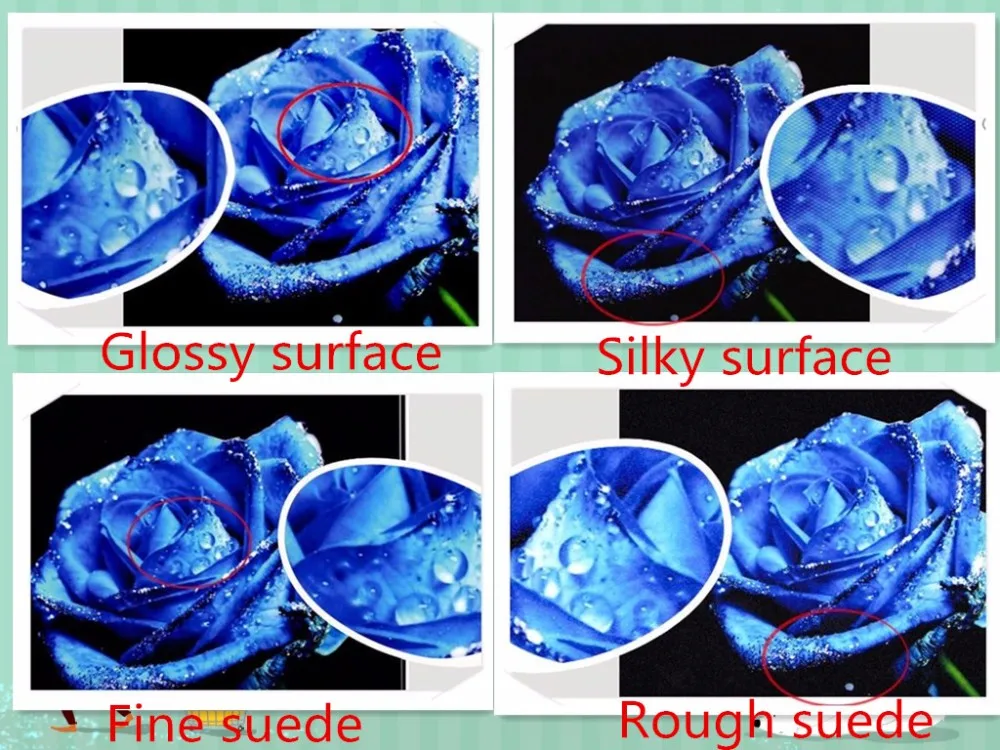 Грубая атласная отделка-Имеет более низкое отражение/блики, чем блескYБумага.Имеет мелкие частицы, очень зернистые.