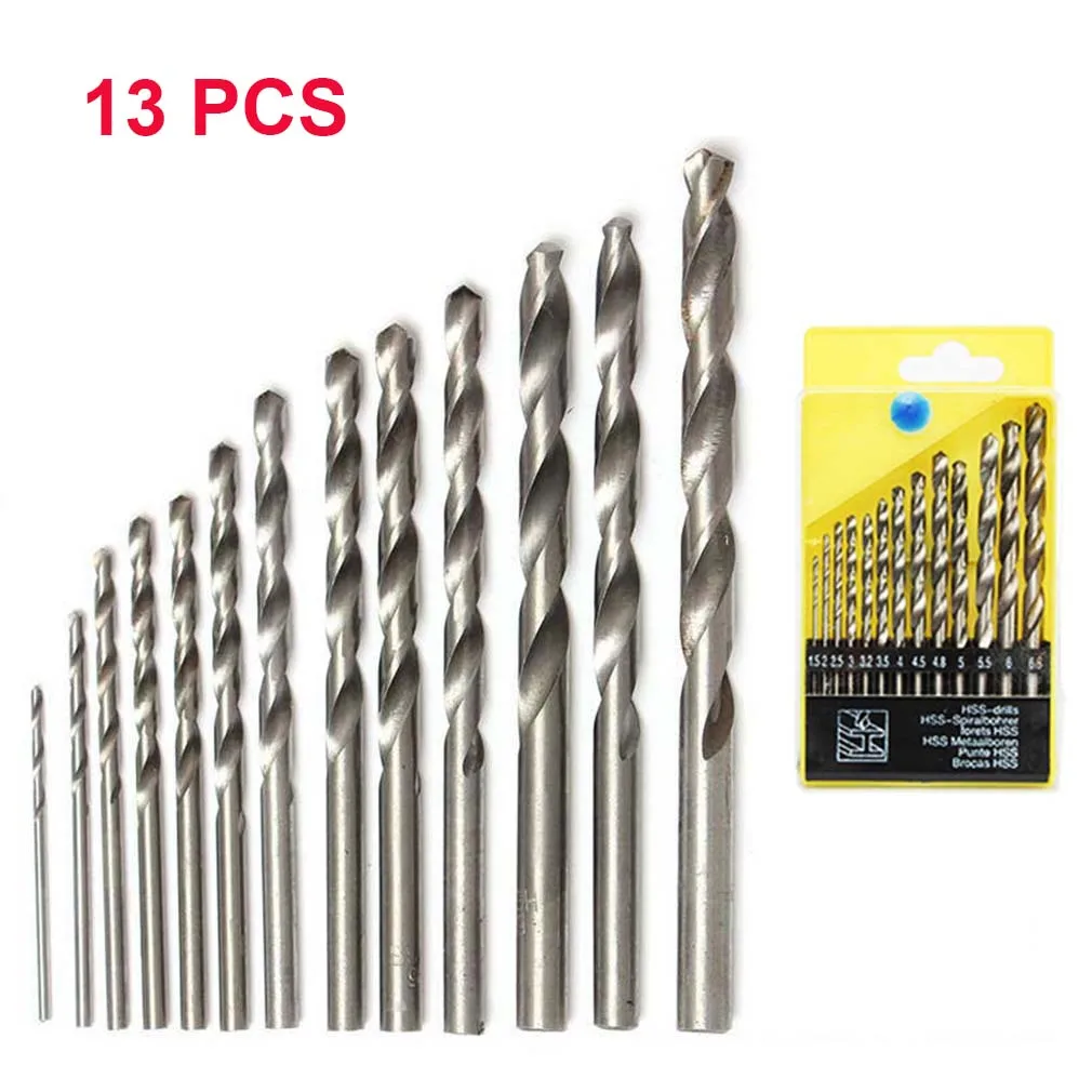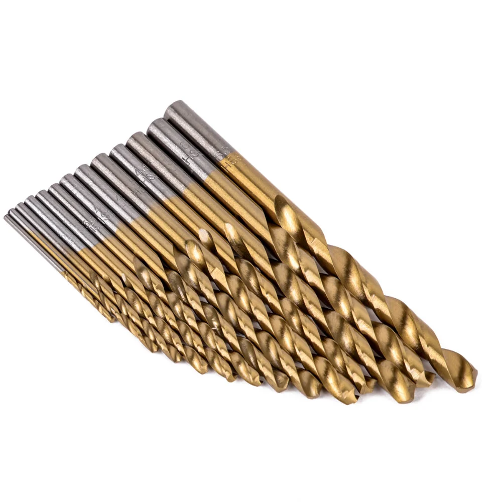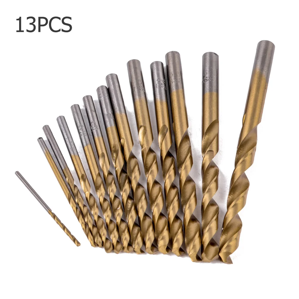 Сверла из быстрорежущей стали с титановым покрытием и прямым хвостовиком, набор сверл с отверстием, режущий инструмент для алюминиевой железной стали 13 шт.