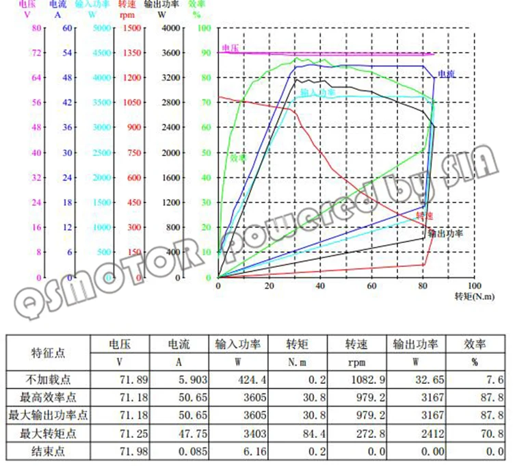 Вот один тестовый тест нашего 205 1500 Вт V2 двигателя концентратора, 72 в 1082 об/мин (высокие об/мин не рекомендуется).