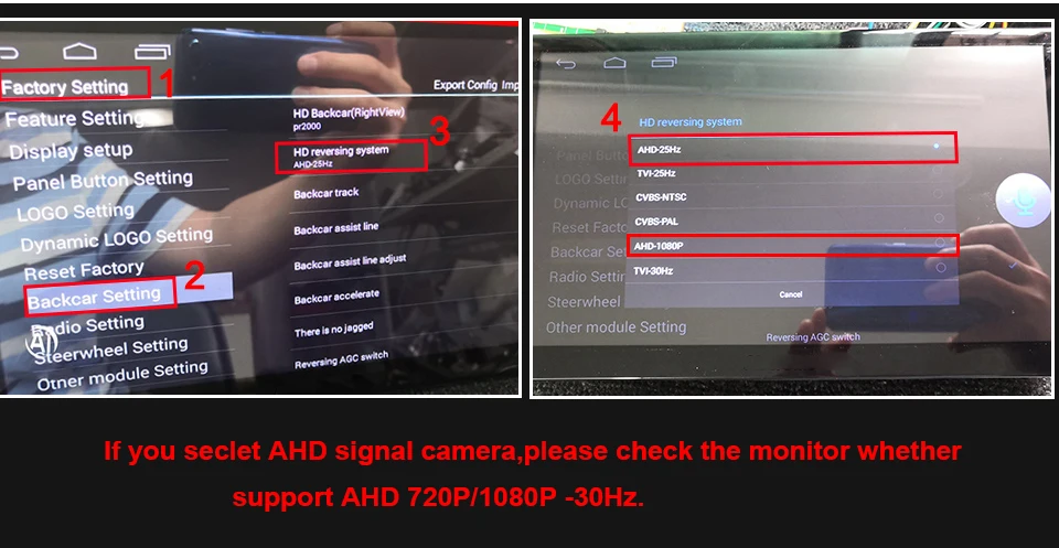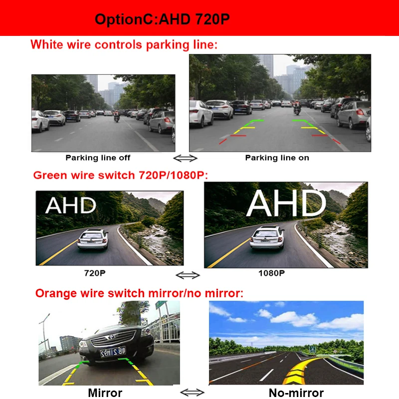 Если вы выбираете 720P AHD, при переключении на 1080PAHD, он также не будет с линией парковки. (ВАЖНО)
