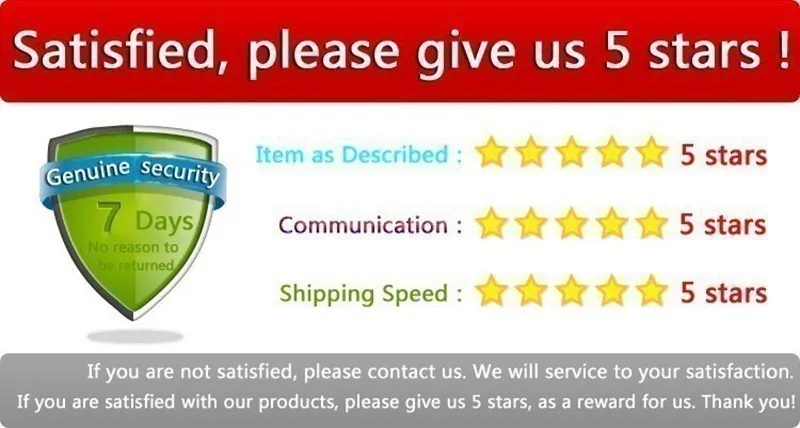 Пожалуйста, дайте нам знать, прежде чем оставить отрицательный отзывы или 1 точку, 2 точки низкого DSR или открыть любые споры, пожалуйста, дайте нам возможность решить любые проблемы, и мы постараемся сделать все возможное, чтобы удовлетворить ваши потребности.
