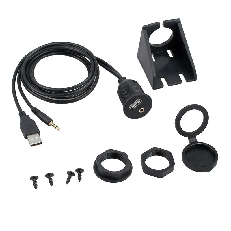 Работает с транспортными средствами с входом AUX USB 2 и 3,5 мм. Предназначен для автомобиля, но используется для любого применения. Используйте существующее отверстие или Вырежьте отверстие на приборной панели и закрепите Гнездо для смыва установите его на приборную панель вашего автомобиля. В комплект входит кронштейн для крепления гнезда на приборной панели вашего автомобиля. длина кабеля около 1 м. может быть подключен к любому автомобильному стерео, оснащенному AUX Вход.