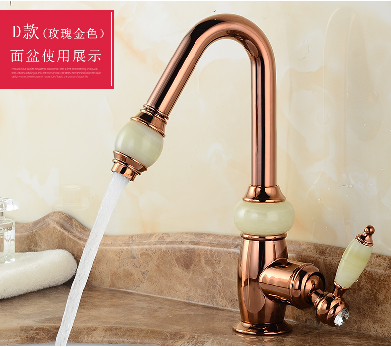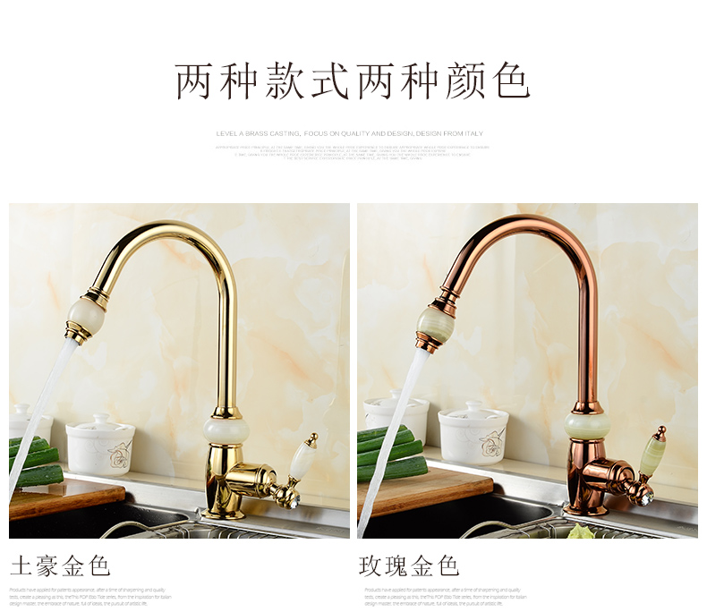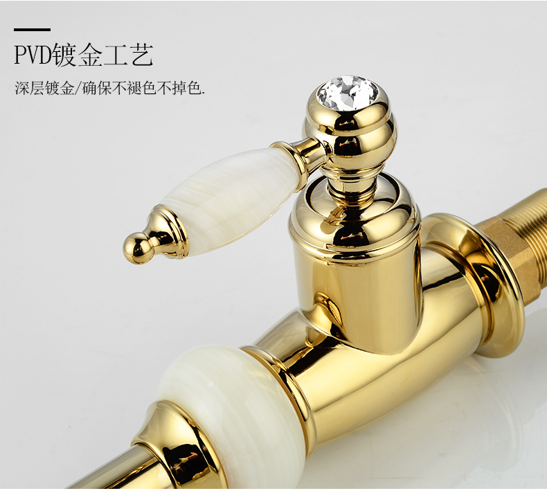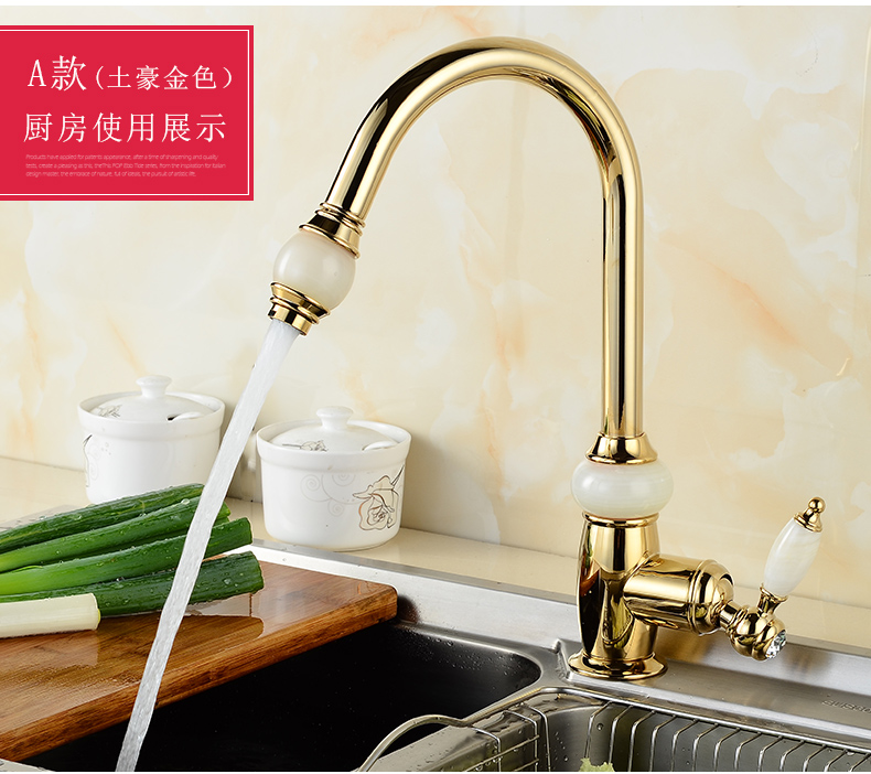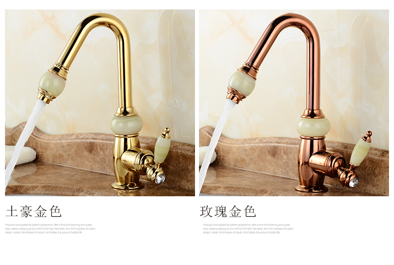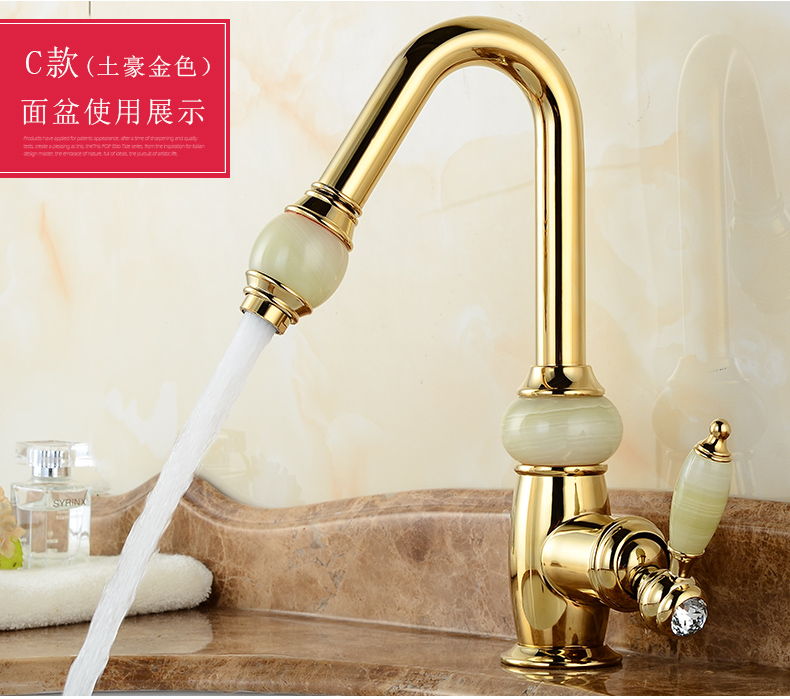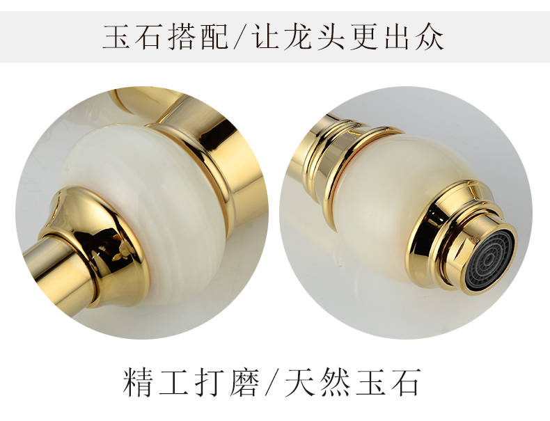 Кран для ванной комнаты из чистой меди золотистого цвета, европейский стиль, кухонный кран с одним отверстием из натурального нефрита, кран для горячей и холодной воды