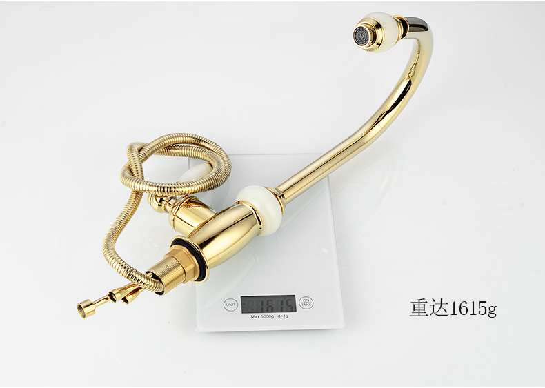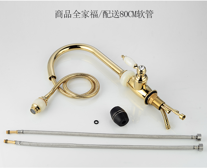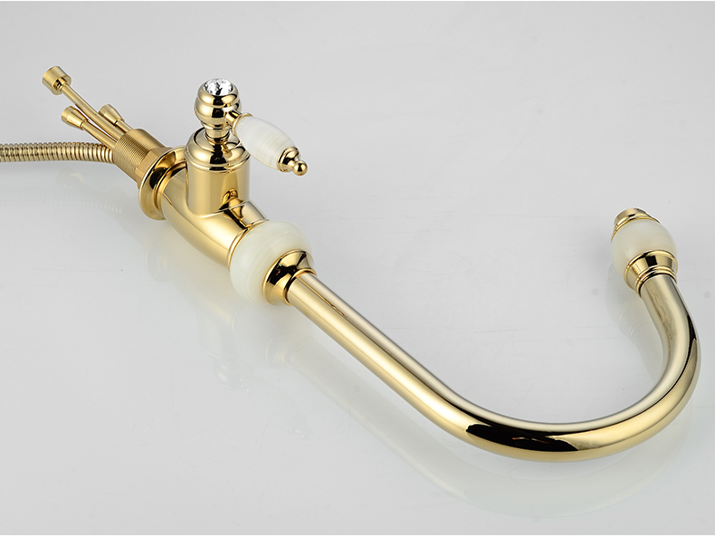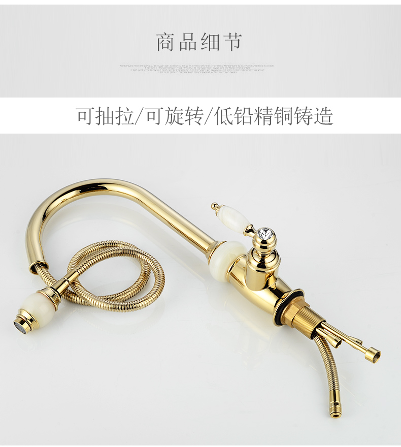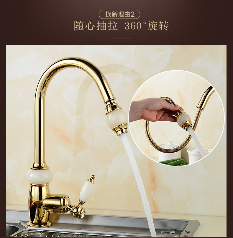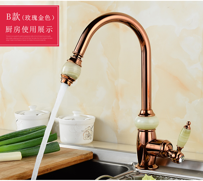 Кран для ванной комнаты из чистой меди золотистого цвета, европейский стиль, кухонный кран с одним отверстием из натурального нефрита, кран для горячей и холодной воды