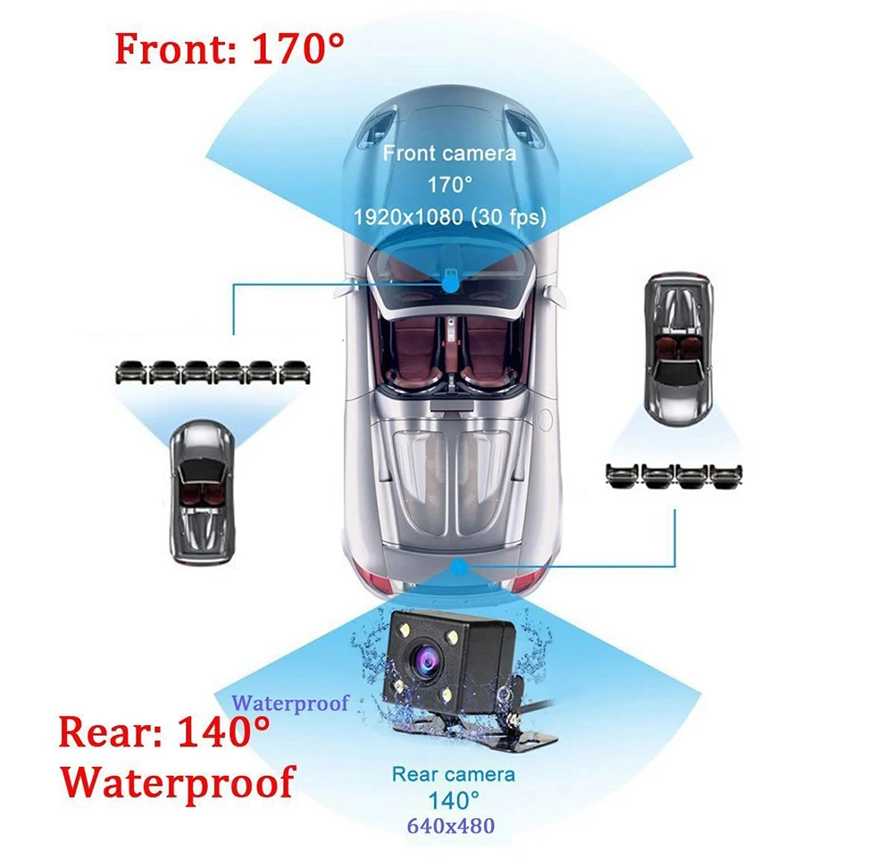 Full HD 1600 мегапиксельная 1296 P 170 градусов фронтальная и ветронепроницаемая VGA 120 градусов Задняя, супер широкоугольная камера может получить полное покрытие вашей полосы движения. Вы можете легко переключаться между передней и задней линзами. При заднем сидении автомобиля задняя камера автоматически откроет обратное изображение.