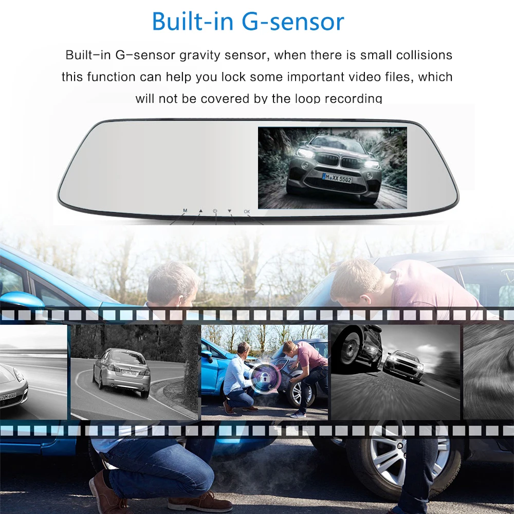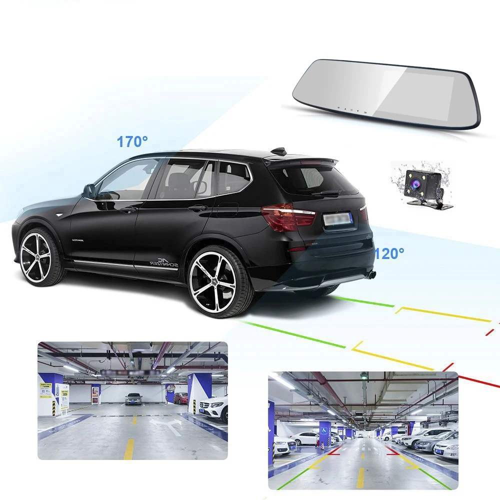 Этот автомобильный видеорегистратор имеет две камеры, которые позволяют одновременно записывать видео с двух разных углов. Изображение на дисплее позволит вам иметь четкое представление с фронтальной и задней камеры. Когда автомобиль в механизм обратного хода, этот Автомобильный видеорегистратор автоматически переключится на резервную камеру с видом изображения с парковочной линией.