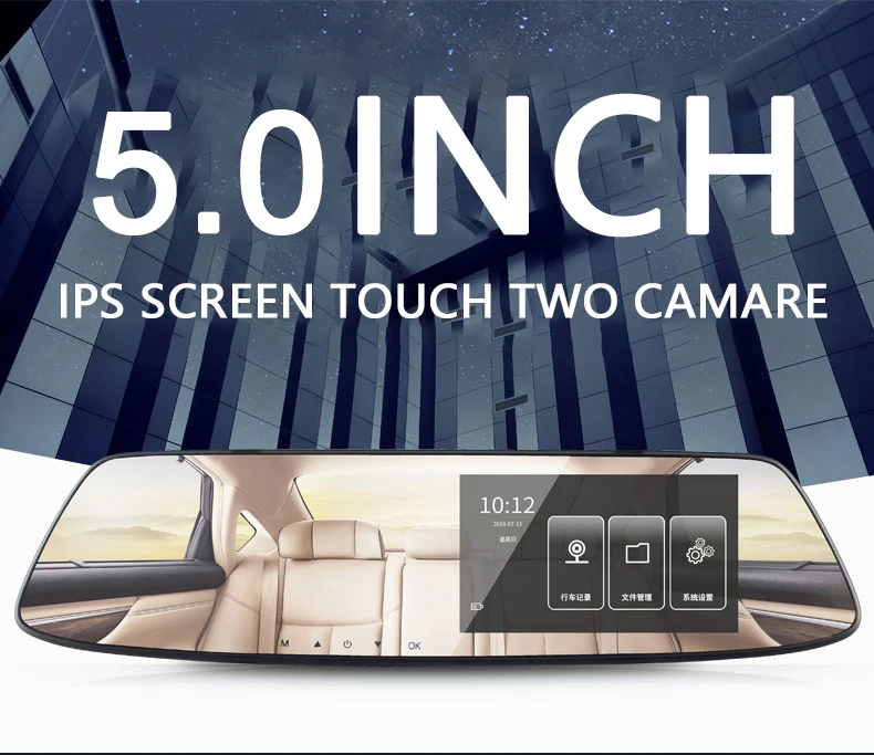 5,0 дюймов сенсорный ips Автомобильный видеорегистратор Камера ADAS двойной объектив Dash Cam 1296 P с заднего вида авто регистратор цифровой видеорегистратор видеокамера