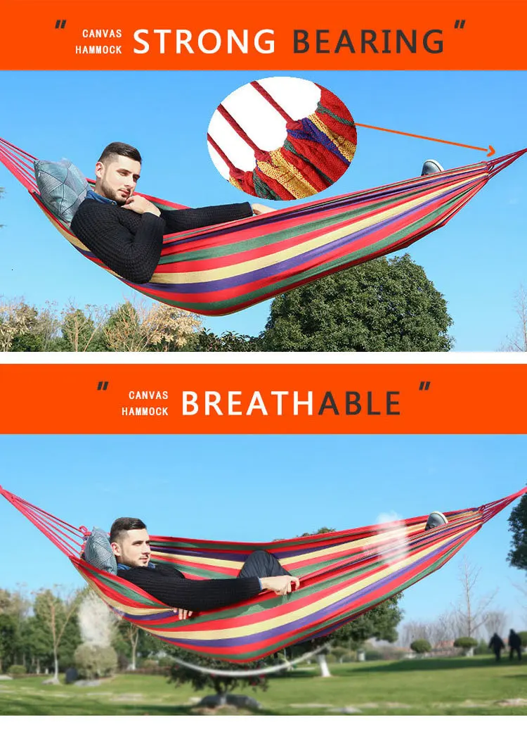 250*150cm 2 People Outdoor Canvas Camping Hammock Bend Wood Stick steady Hamak Garden Swing Hanging Chair Hangmat Blue Red