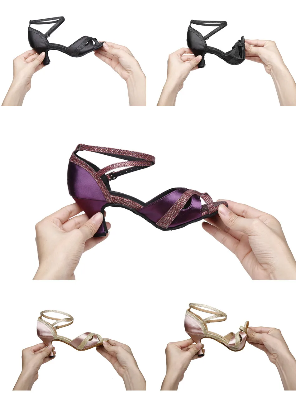 Танцевальная обувь для танцев; 1. Цвет: фиолетовый, розовый, черный В наличии, какие-либо другие цвета могут быть выполнены по индивидуальному заказу; 2. Размер: US4 ~ US11, дополнительные маленькие и большие размеры могут быть настроены; 3. Высота каблука: 7,5 см, 8,5 см, 9 см, 10 см, можно подгонять; 4. Верхний материал: искусственная кожа с ювелирными изделиями, rihinestone; 5. Материал подошвы: мягкая подошва из замши; 6. Повод: вечерние/бальные/танцевальные и т. Д.; 7. Подходящий танец: Сальса Румба Танго, джазз кизомба Чача Бачата и т. Д. Виды бальных танцев s. Укажите размеры продукта, включая различные размеры skus.