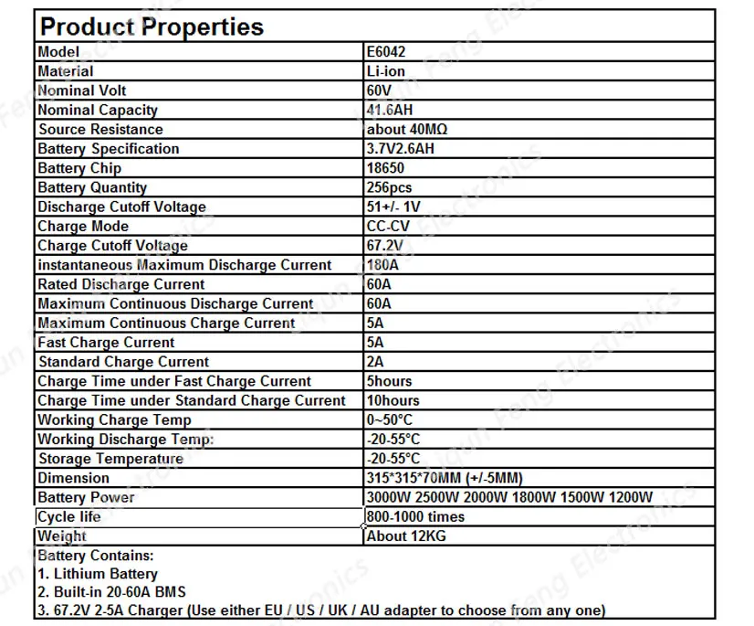 60 V литиевая Батарея пакет 60 V 40AH 2000 W 2500 W 3000 W аккумулятора электроскутера 60 V 40AH Электрический велосипед Батарея с 5A Зарядное устройство.