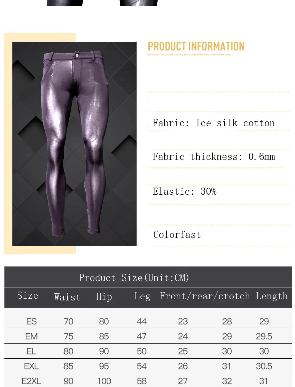 MEISE сексуальные мужские шелковые хлопковые обтягивающие брюки с U-образной вырезом, тонкие высокоэластичные повседневные гладкие дышащие брюки штаны для ночного клуба