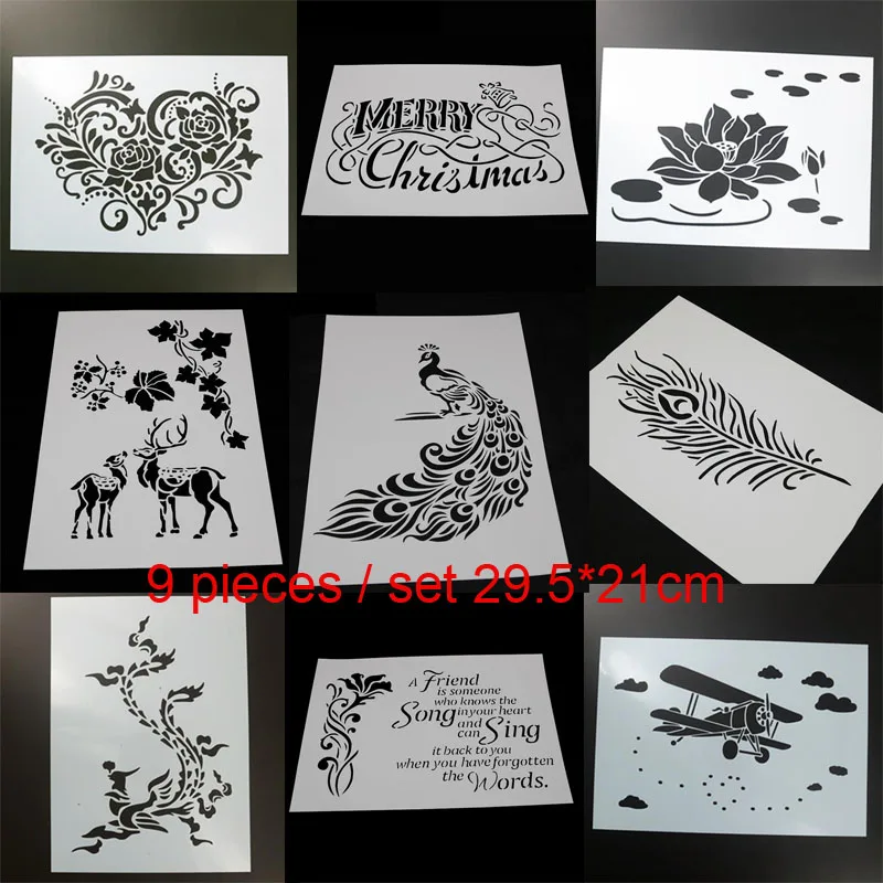 9 шт павлиньими перьями шаблон для рисования трафарет пуля журнал раскраска для скрапбукинга рельефная декоративная альбомная бумага шаблон карты