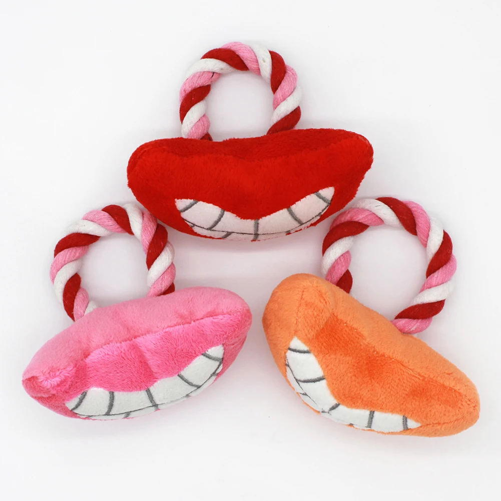 Для домашних собак и котов щенок забавная хлопковая веревка Зубы Форма губ плюшевая кукла скрипучая жевательная игрушка