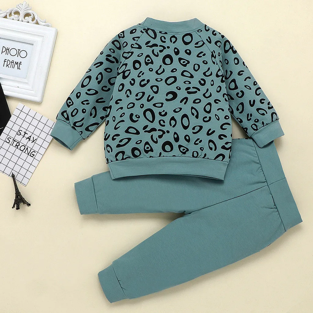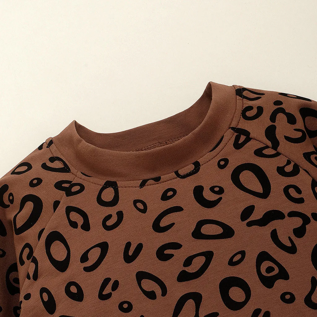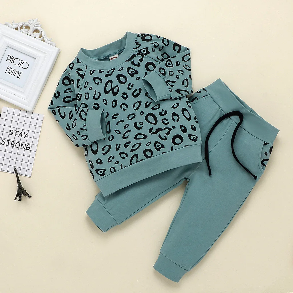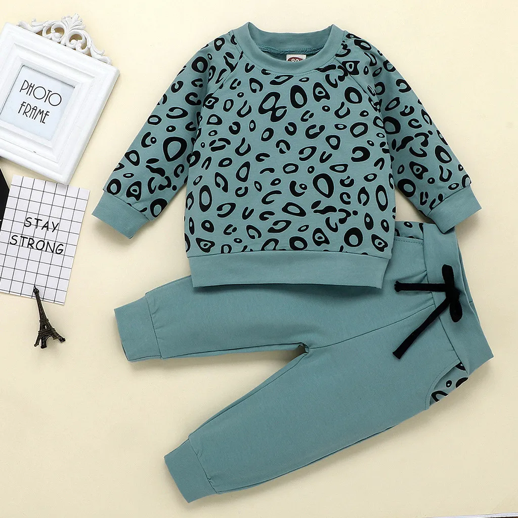 Одежда для маленьких мальчиков и девочек модный Леопардовый топ с длинными рукавами для мальчиков, милые однотонные штаны Детский костюм для мальчиков комплект из 2 предметов