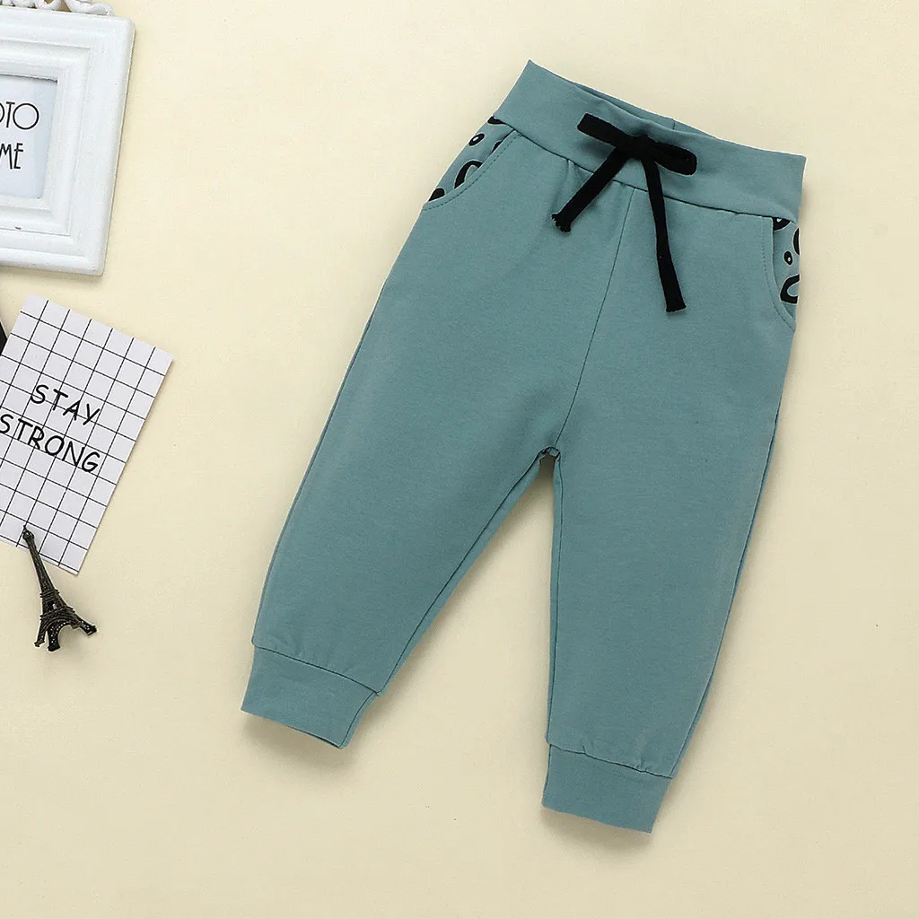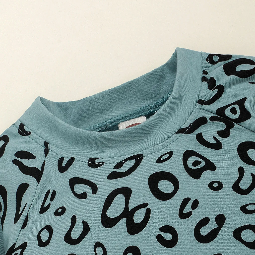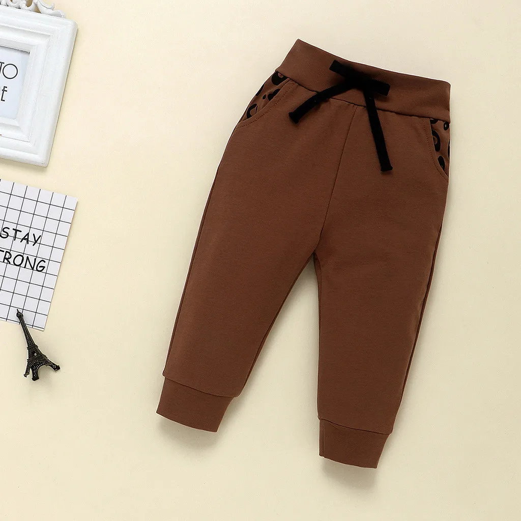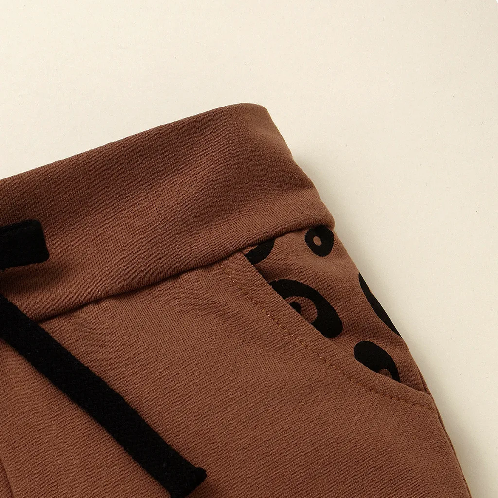 Одежда для маленьких мальчиков и девочек модный Леопардовый топ с длинными рукавами для мальчиков, милые однотонные штаны Детский костюм для мальчиков комплект из 2 предметов