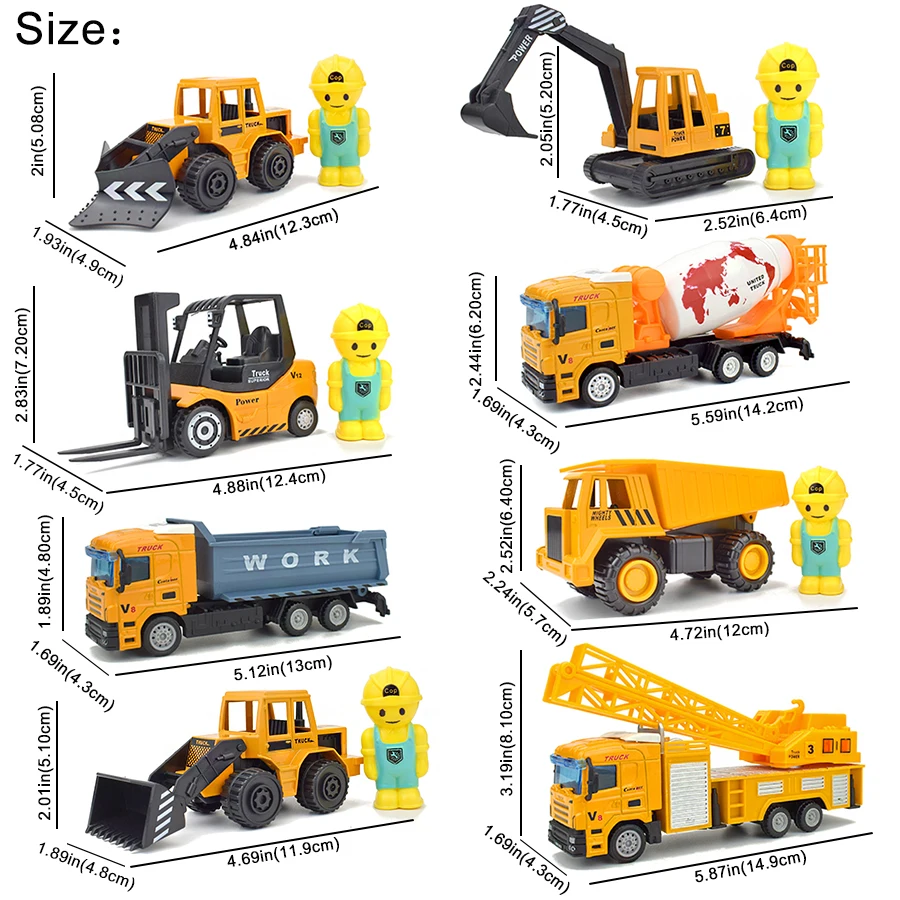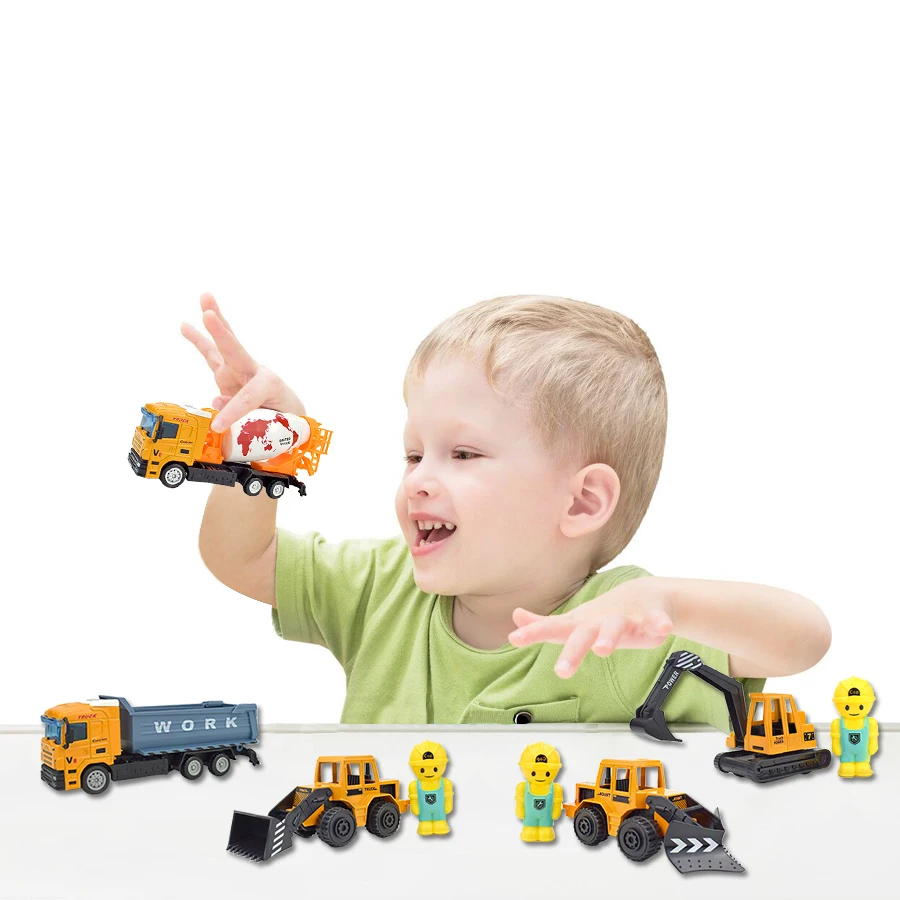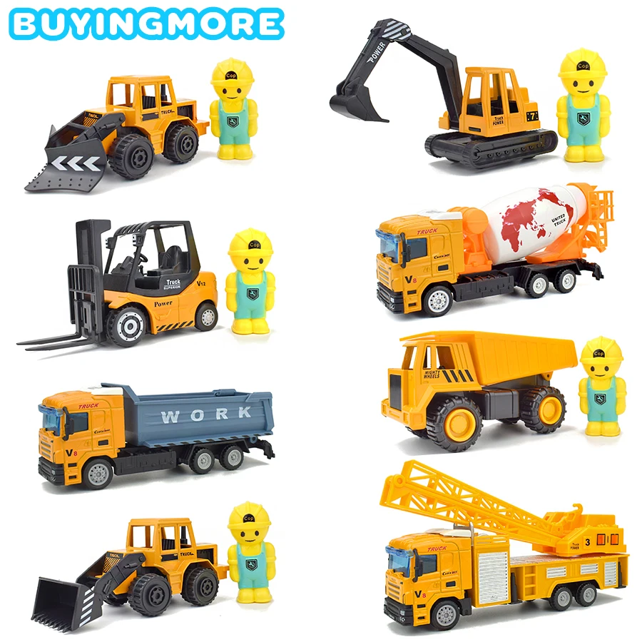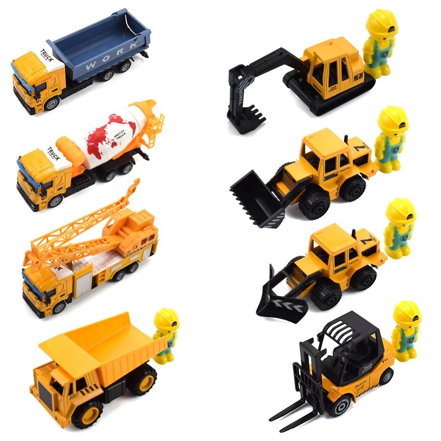 8 видов сплава литья под давлением инженерные автомобильные игрушки для детей Оттягивают назад инерционные транспортные средства экскаватор кран металлическая пластиковая модель игрушка подарок