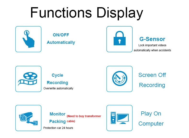 Если вы беспокоитесь о том, что кто-то повредит ваш автомобиль после парковки, вы можете использовать кабель для подключения видеорегистратора к аккумулятору 24 часа в сутки. Если кто-то повредит ваш автомобиль и G-сенсор почувствует удар, видеорегистратор немедленно включится и запишет ситуацию.