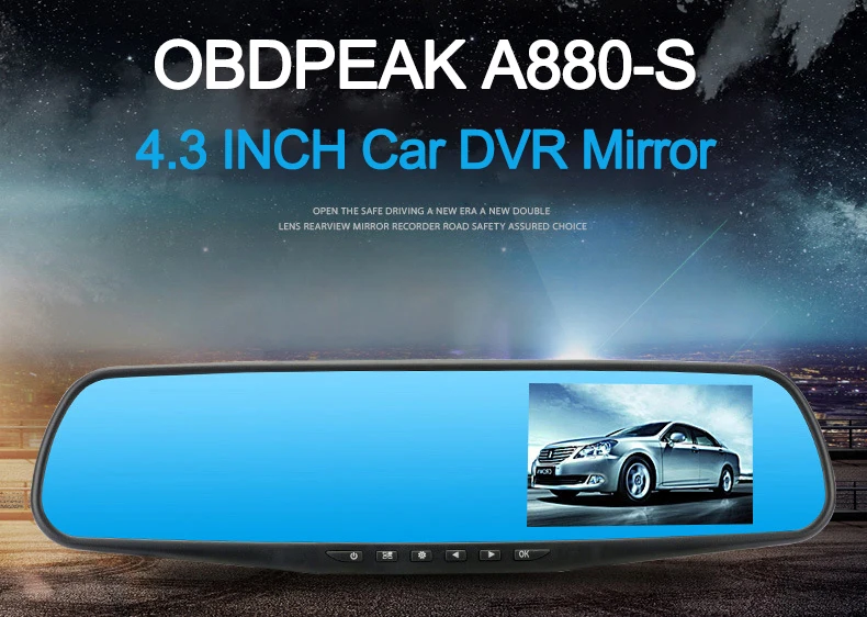 Автомобильный видеорегистратор OBDPEAK, Full HD 1080P, Автомобильное зеркало заднего вида 4,3 дюйма, цифровой видеорегистратор, видеорегистратор с двойным объективом, записывающая видеокамера