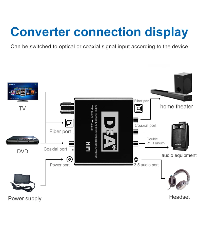 Используется для преобразования коаксиальных или toslink цифровых аудиосигналов в аналоговый L/R аудио.