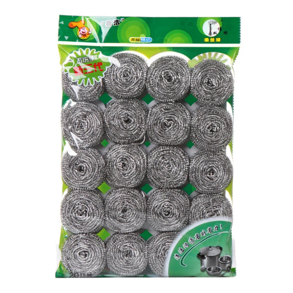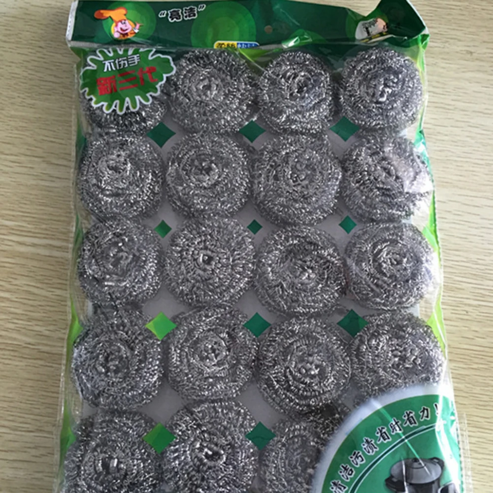 20Pcs Rustless Steel Cleaning Balls Pan Dish Dirt Washing Brush Kitchen Scrubber